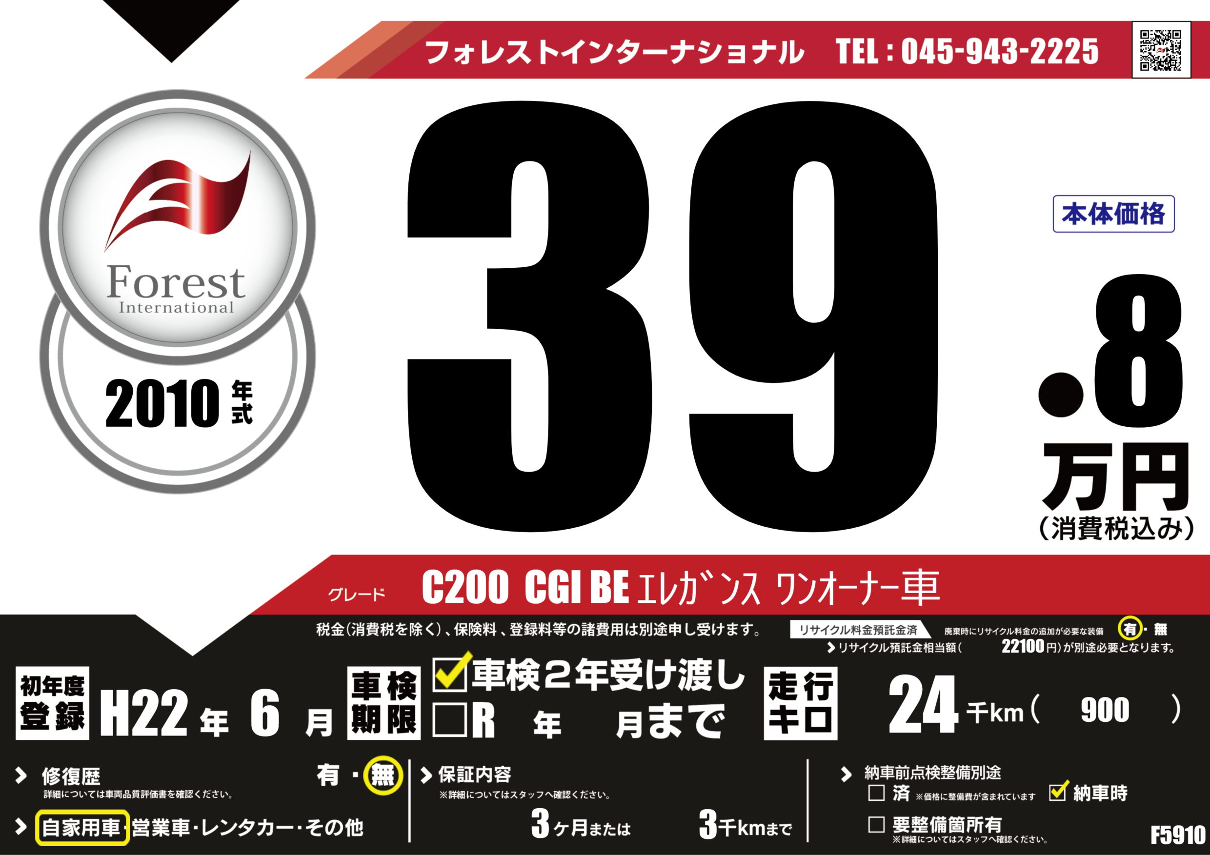 | 走行キロ | 2.4万km | 初年度登録 | H22年6月 |
