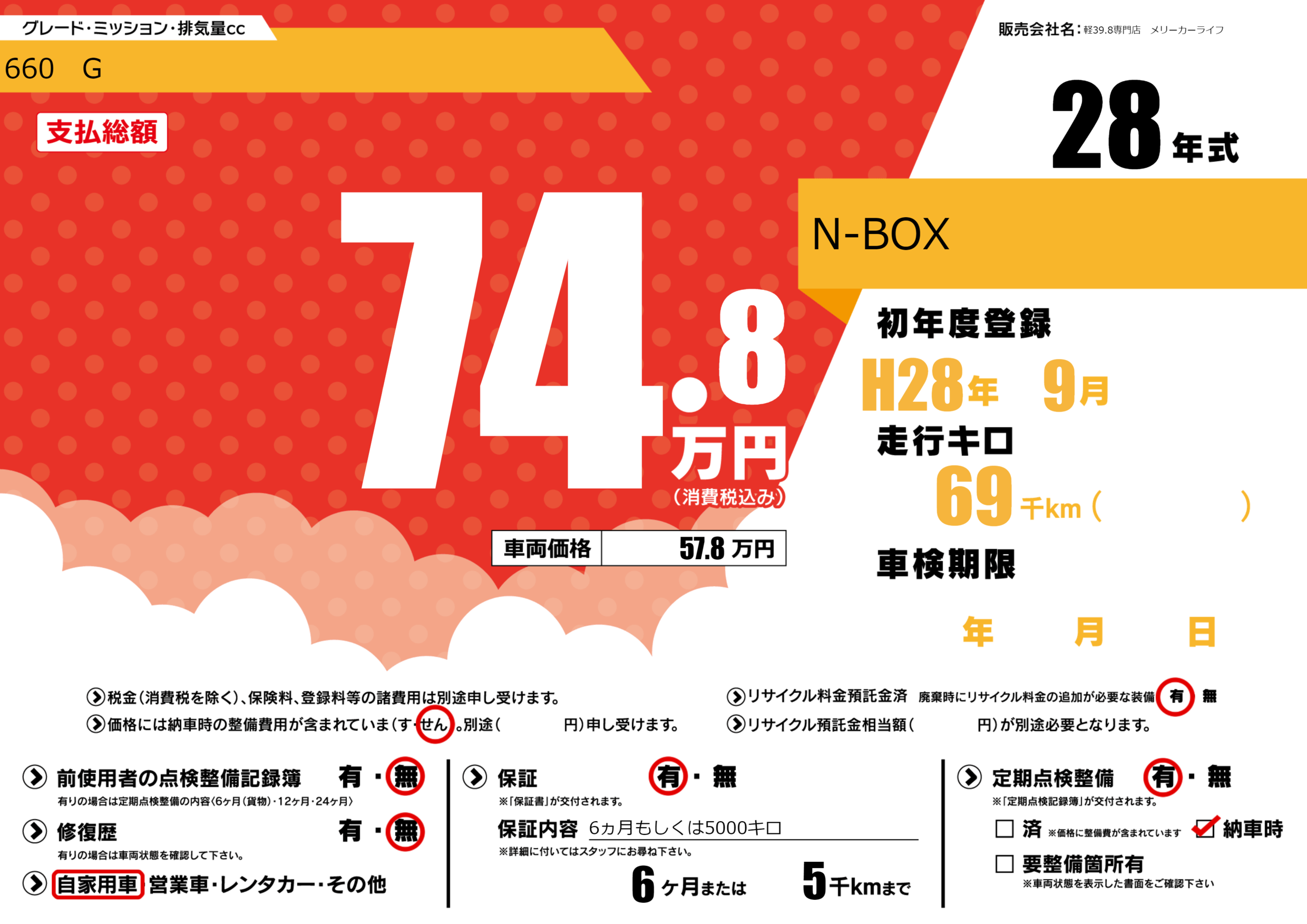 保証内容(6ヵ月もしくは5000キロ) 6ヶ月または5千km