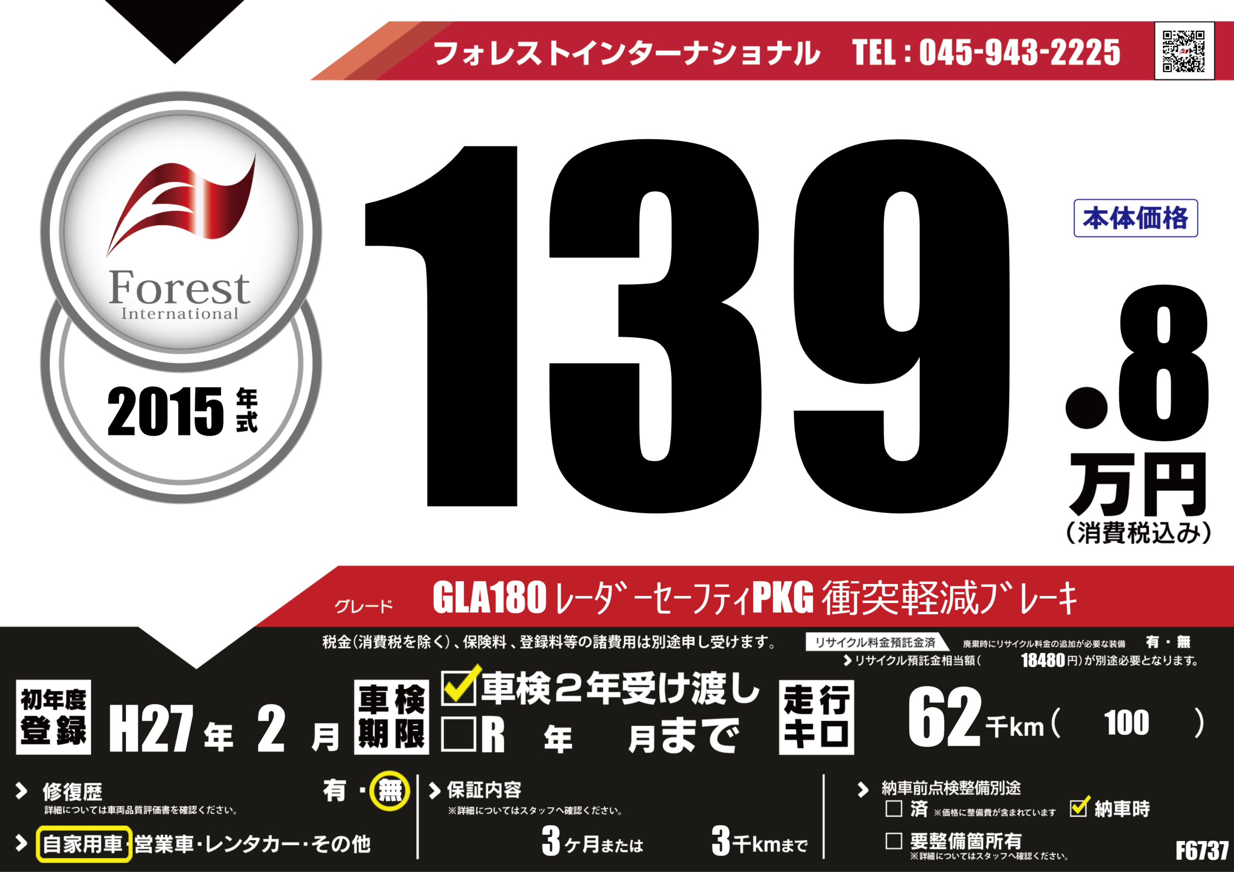 GLA180 レーダーセーフティPKG 衝突軽減ブレーキ |