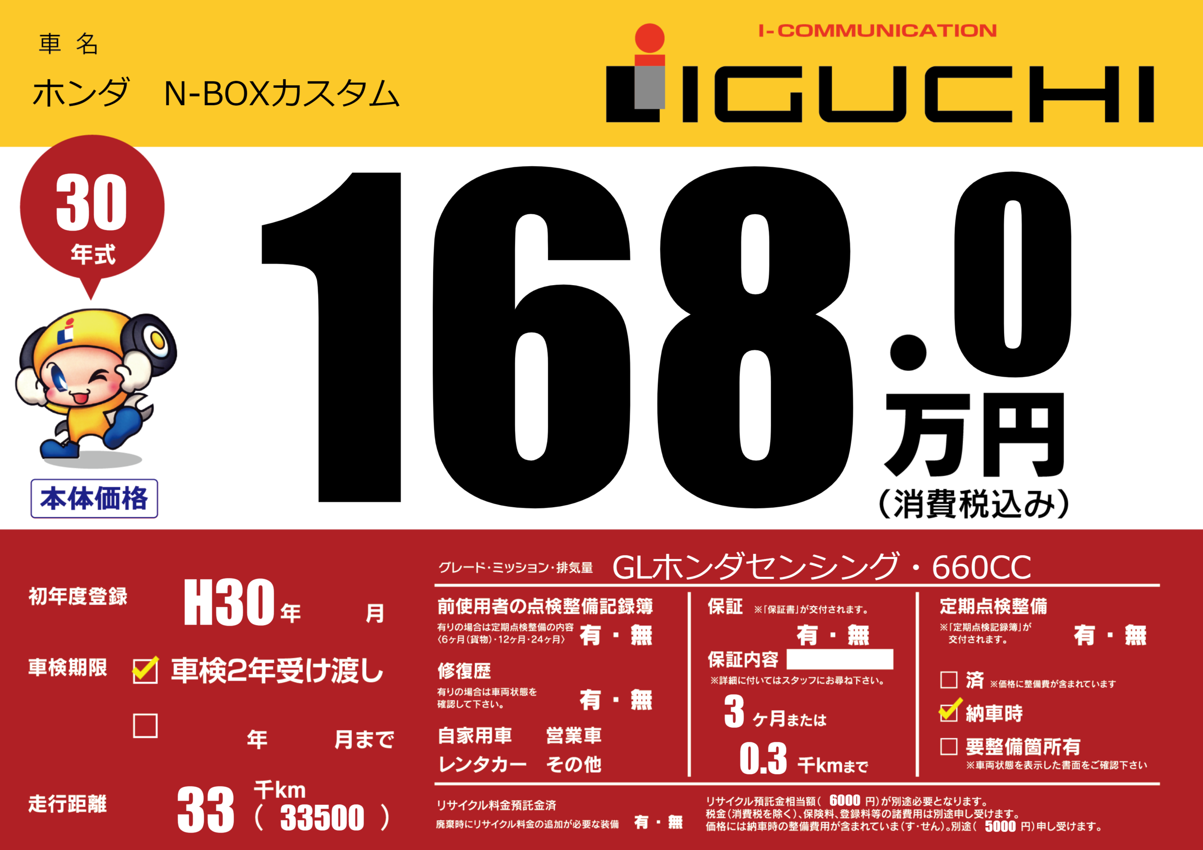 | 定期点検整備 | 納車時あり | ||