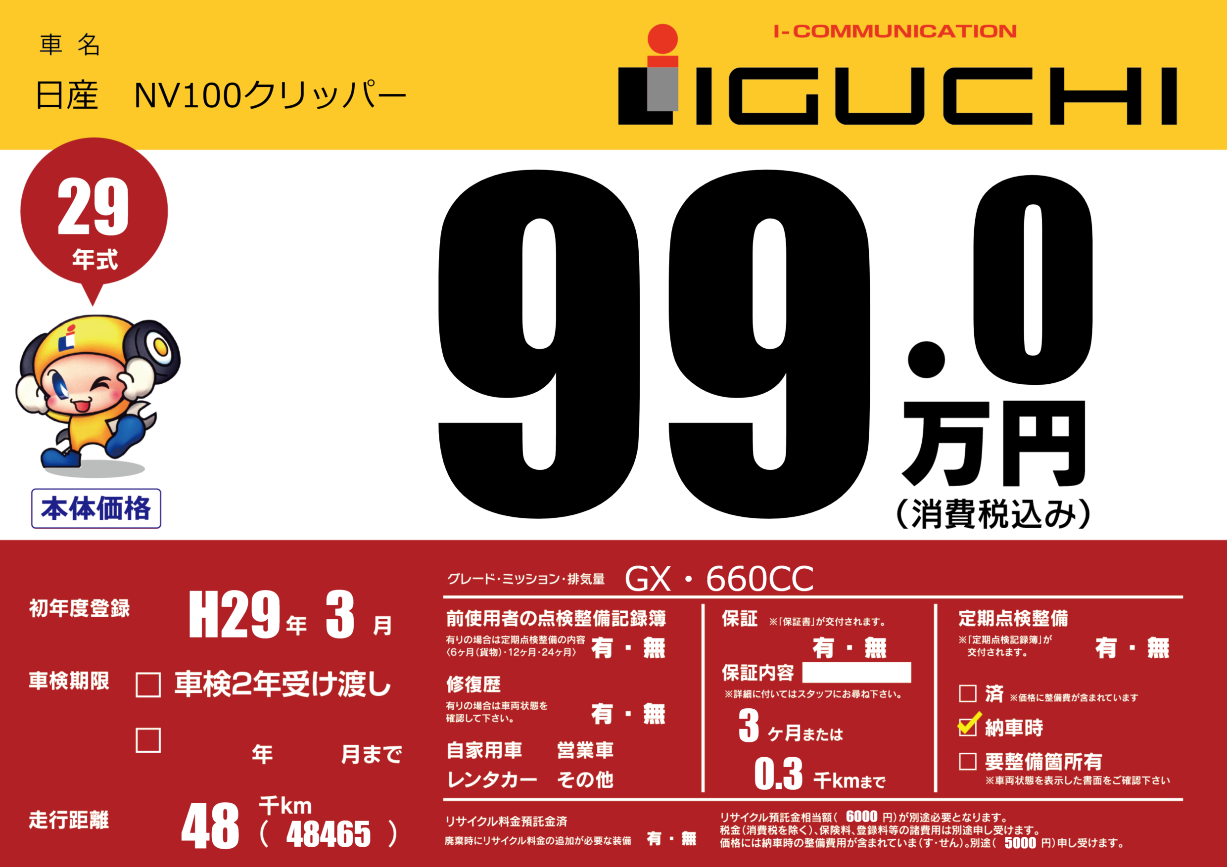 | 車名 | 日産 NV100クリッパー | グレード ミッション 排気量 |