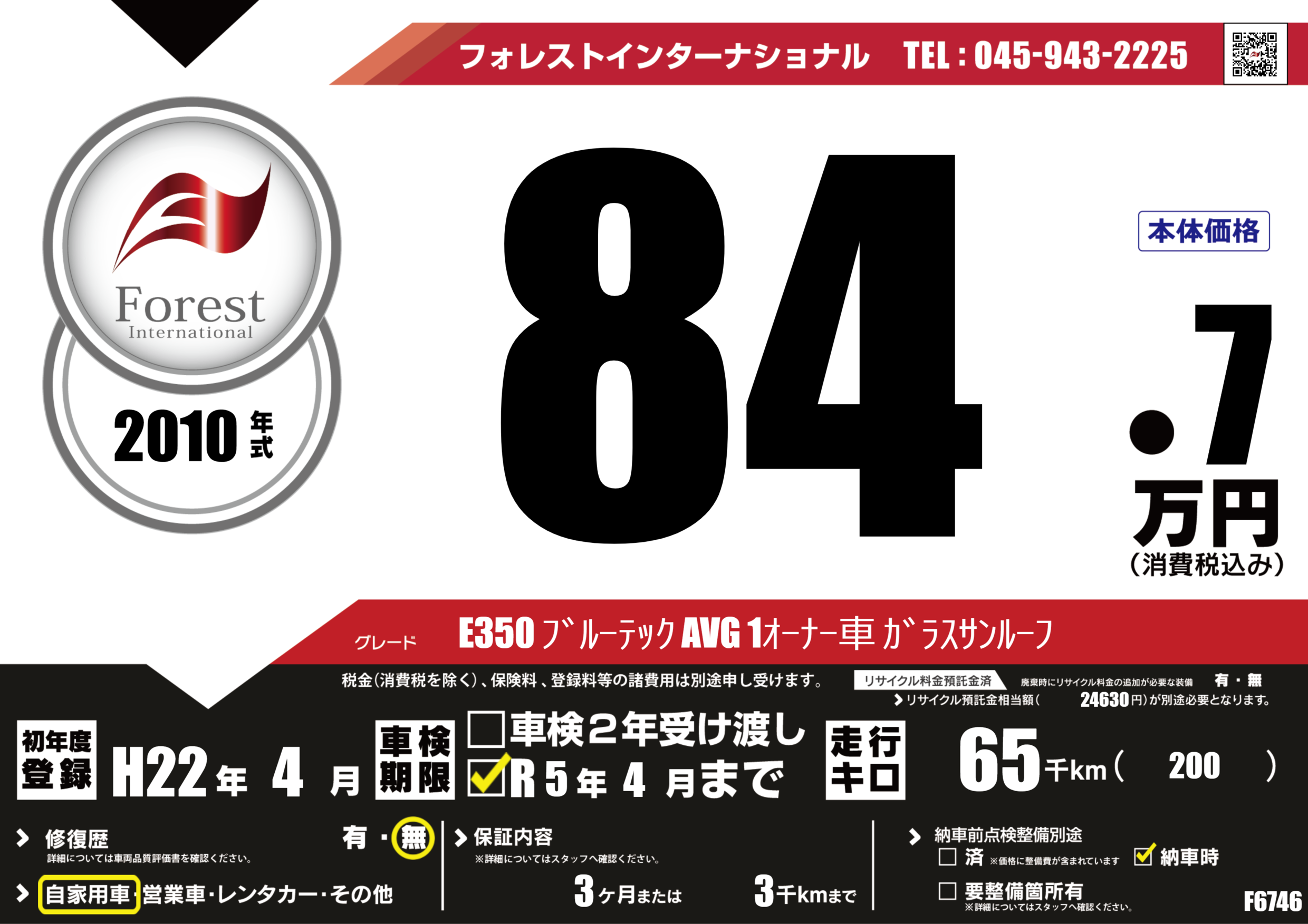 | 走行キロ | 6.5万km | 初年度登録 | H22年4月 |