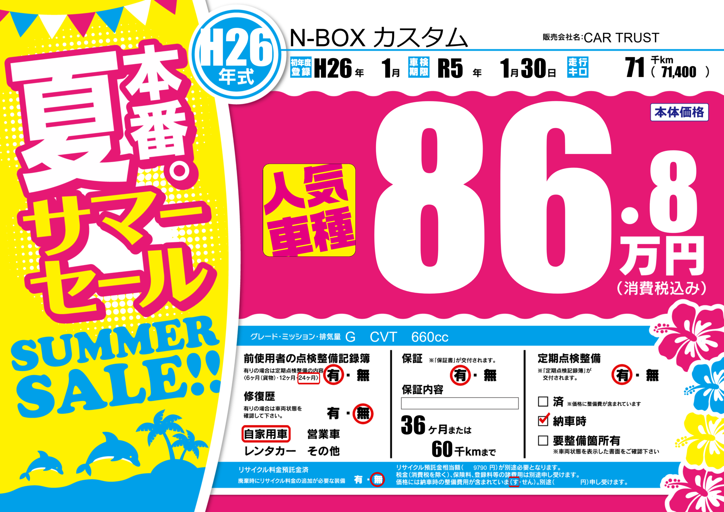 あり | 車検制限 | R5年1月30月 |