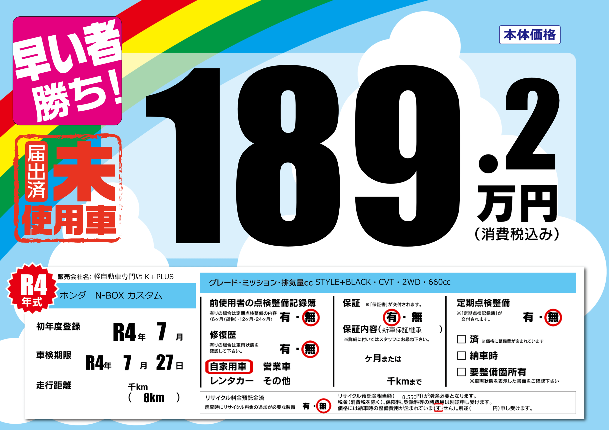 | 走行キロ | - | 初年度登録 | R4年7月 |