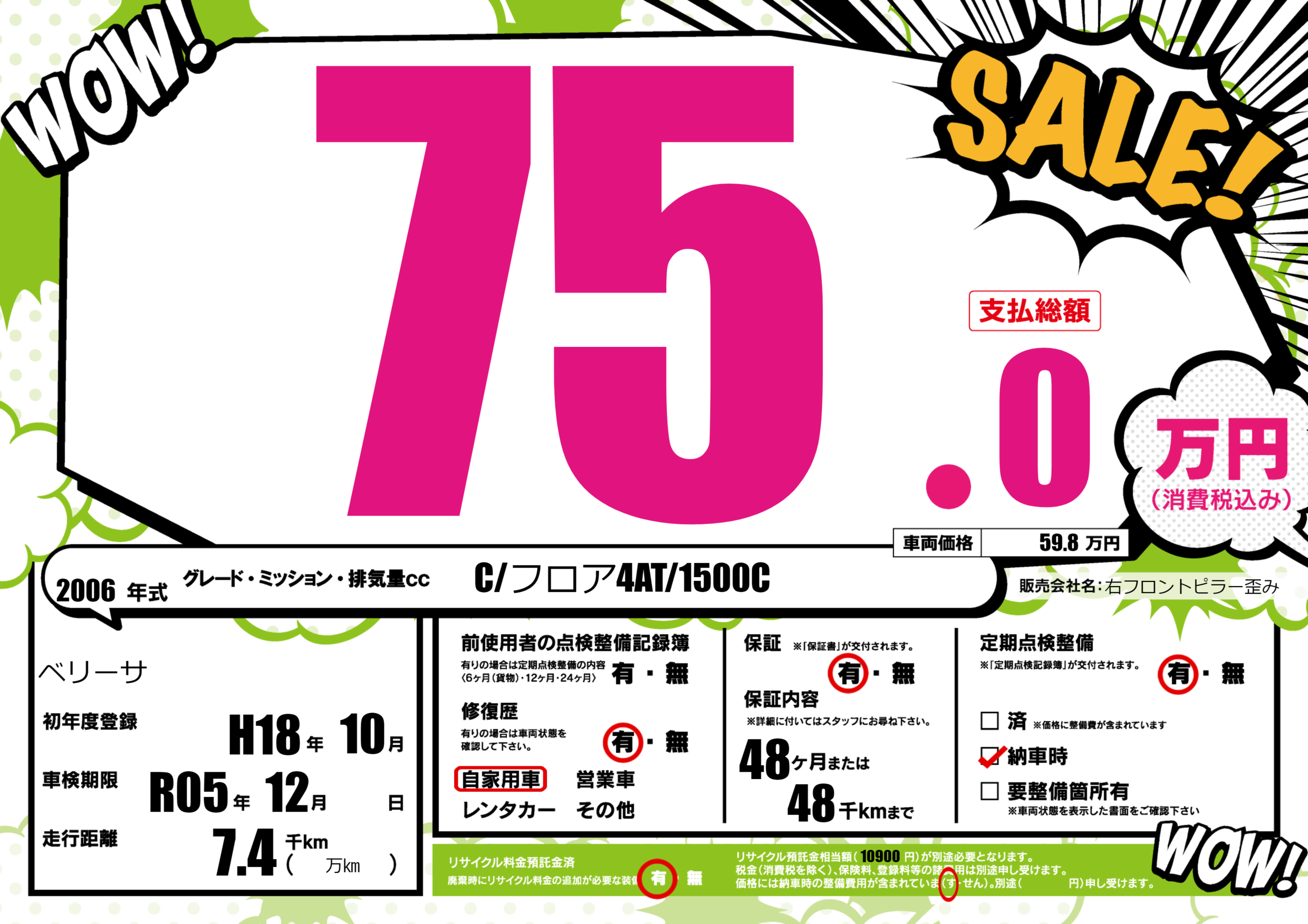 保証付き 保証内容(---) 48ヶ月または(48)千kmまで |