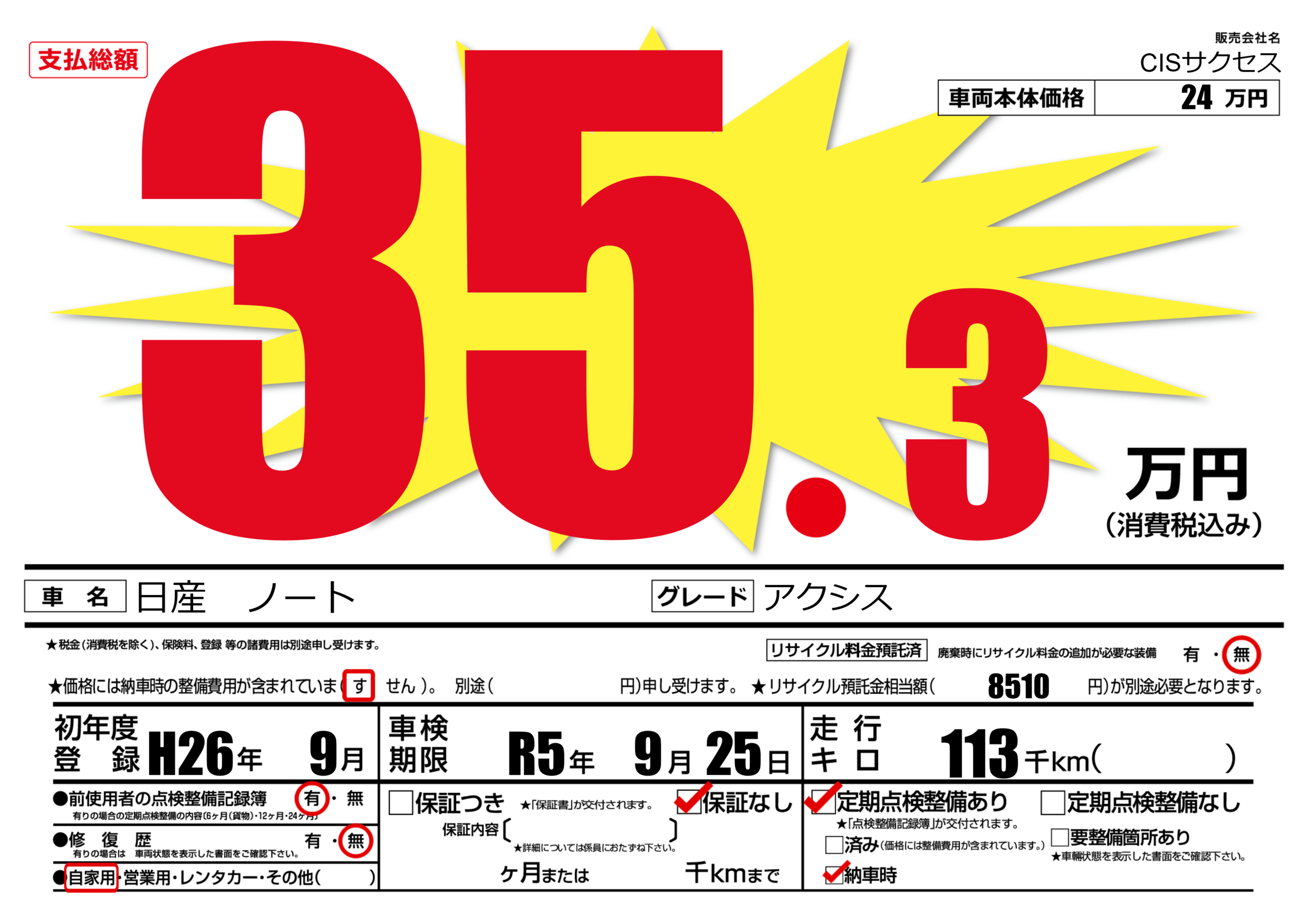 | 車名 | 日産 ノート | グレード ミッション 排気量 |