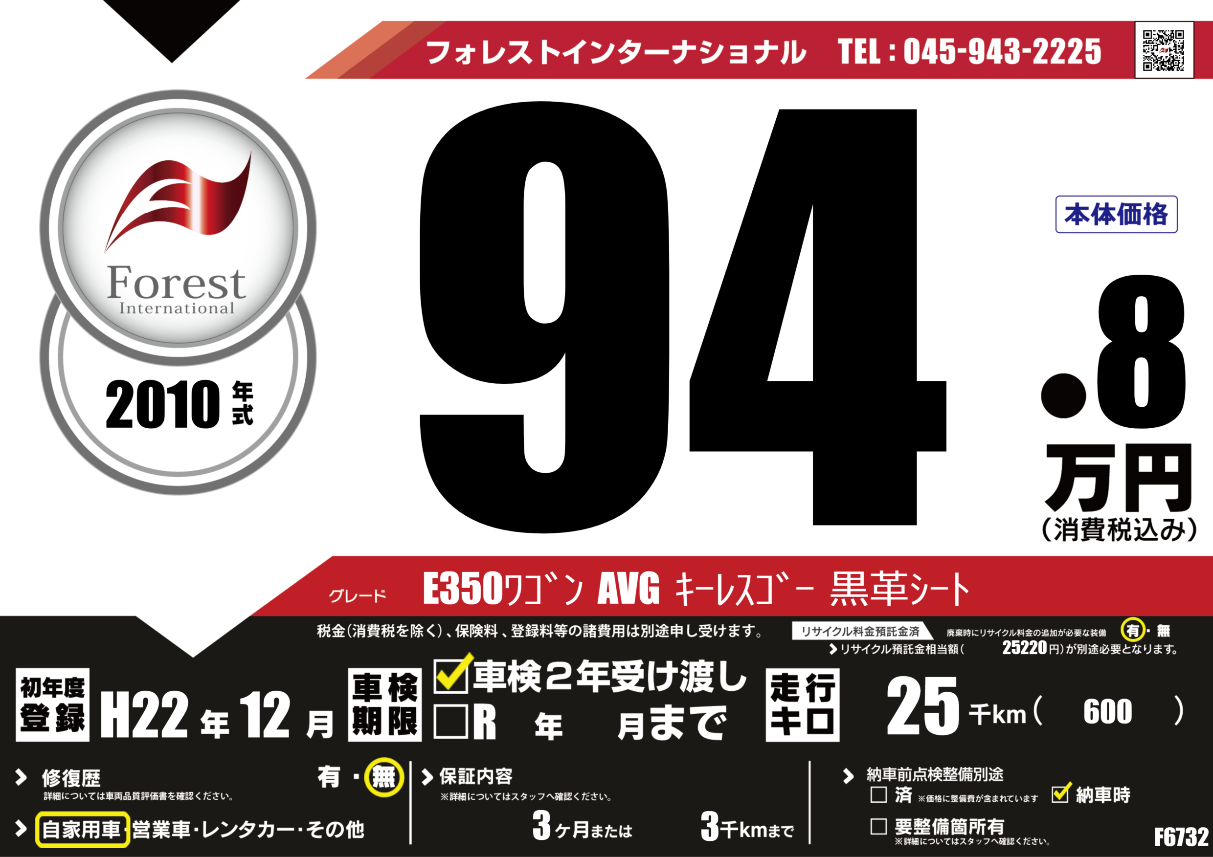| 走行キロ | 2.5万km | 初年度登録 | H22年12月 |
