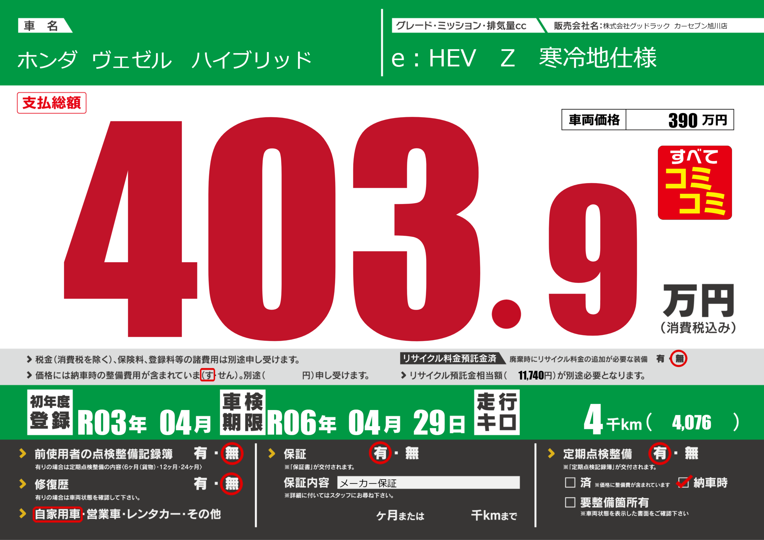 | 走行キロ | 0.4万km | 初年度登録 | R03年04月 |