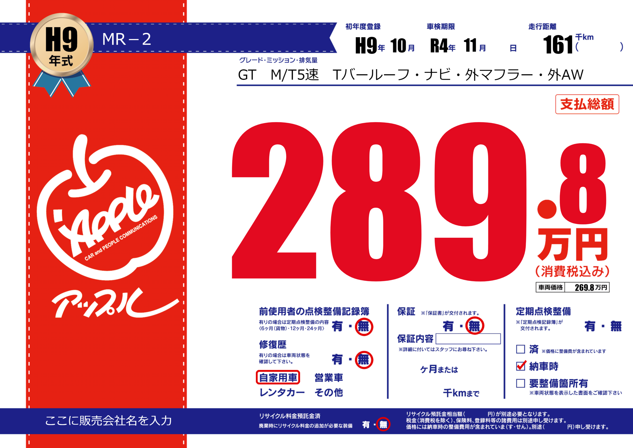 | 車名 | MR-2 | グレード ミッション 排気量 |