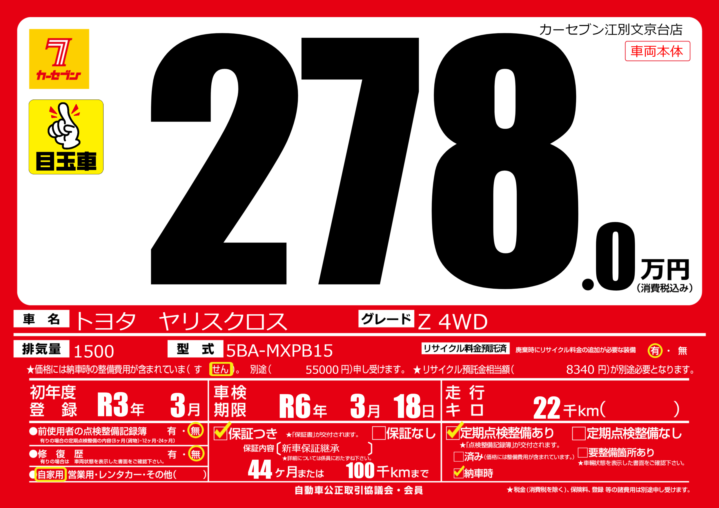 車検制限 | R6年3月18月 |