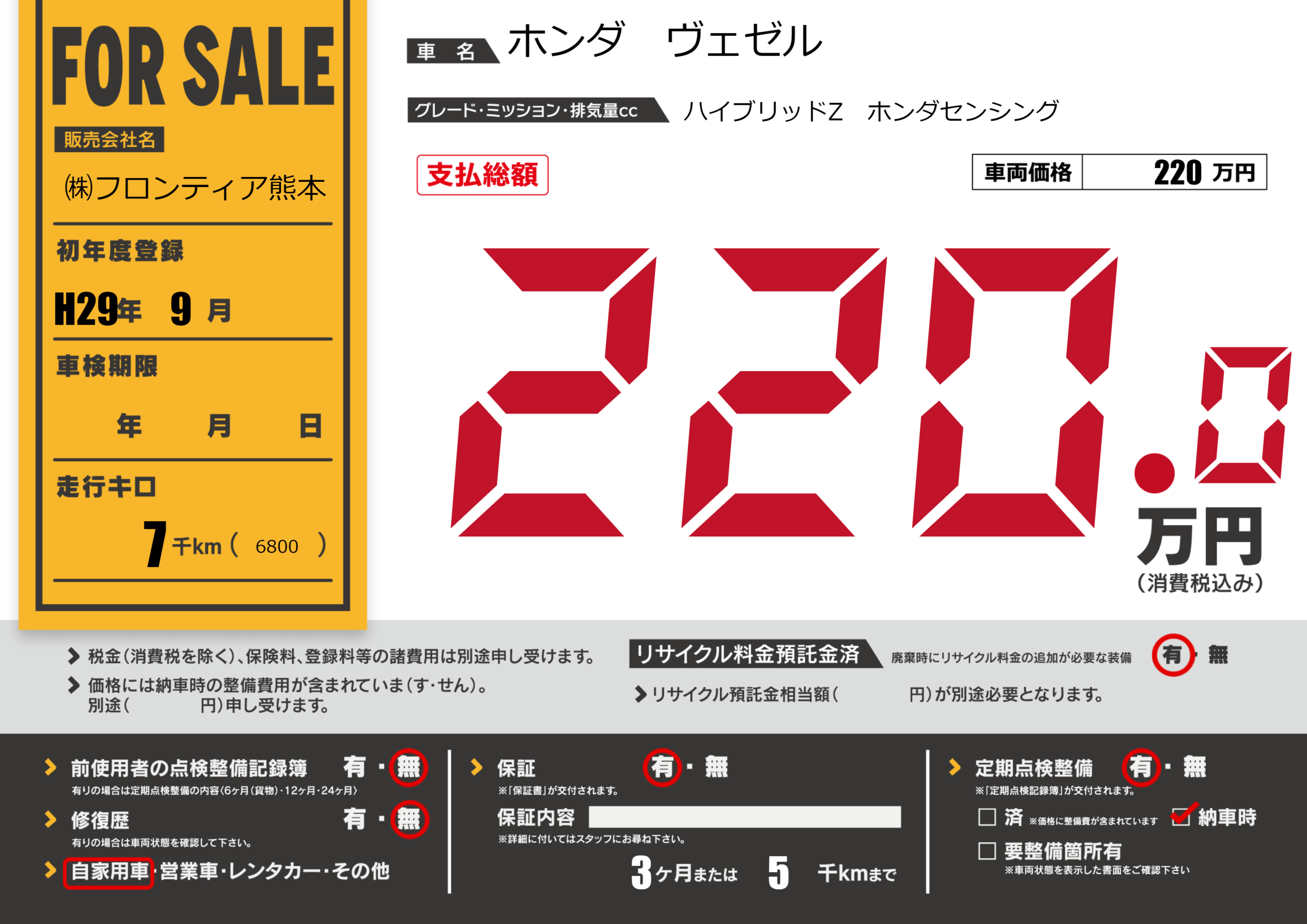 | 走行キロ | 0.7万km | 初年度登録 | H29年9月 |