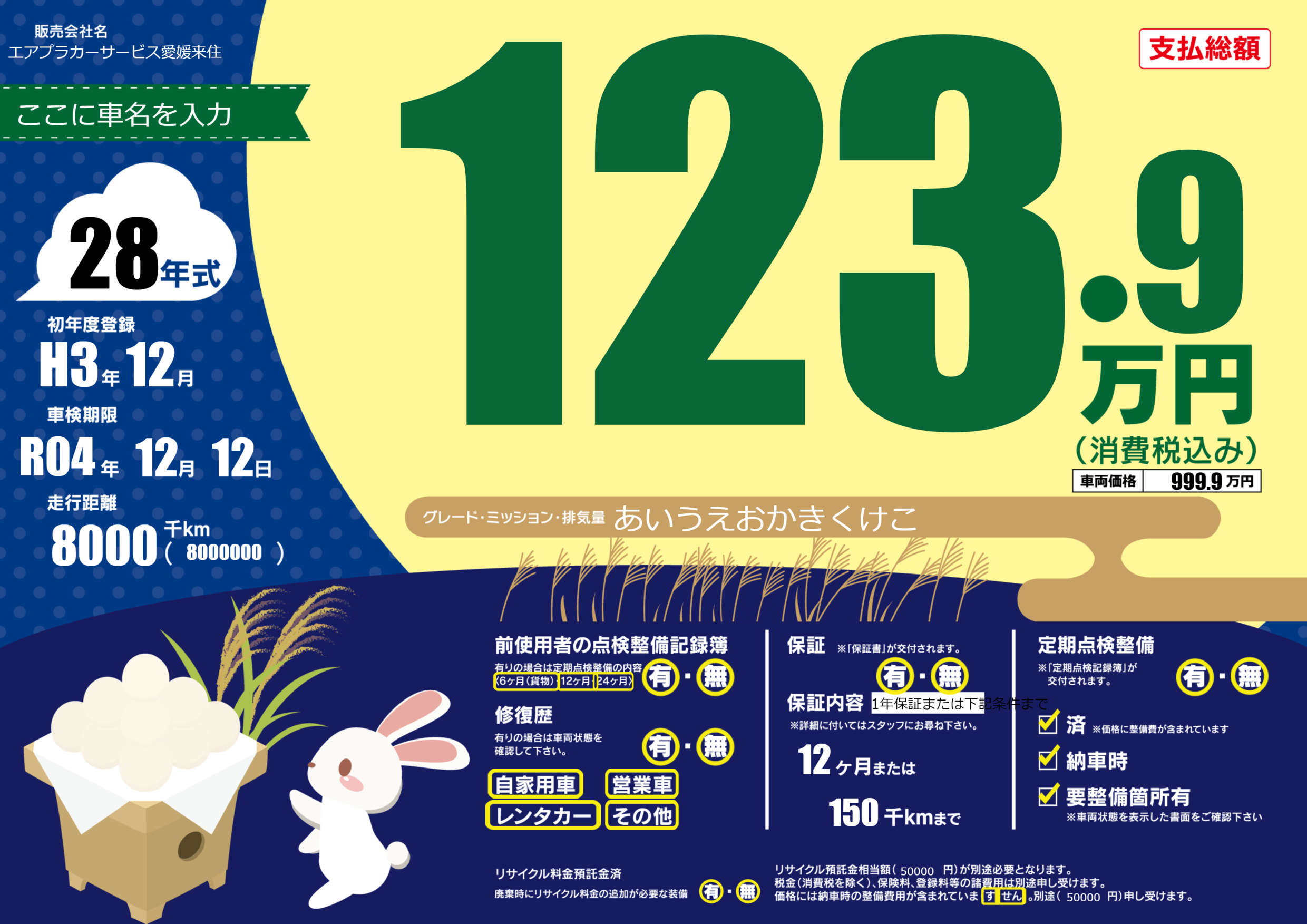 | 車名 | ここに車名を入力 | グレード ミッション 排気量 |