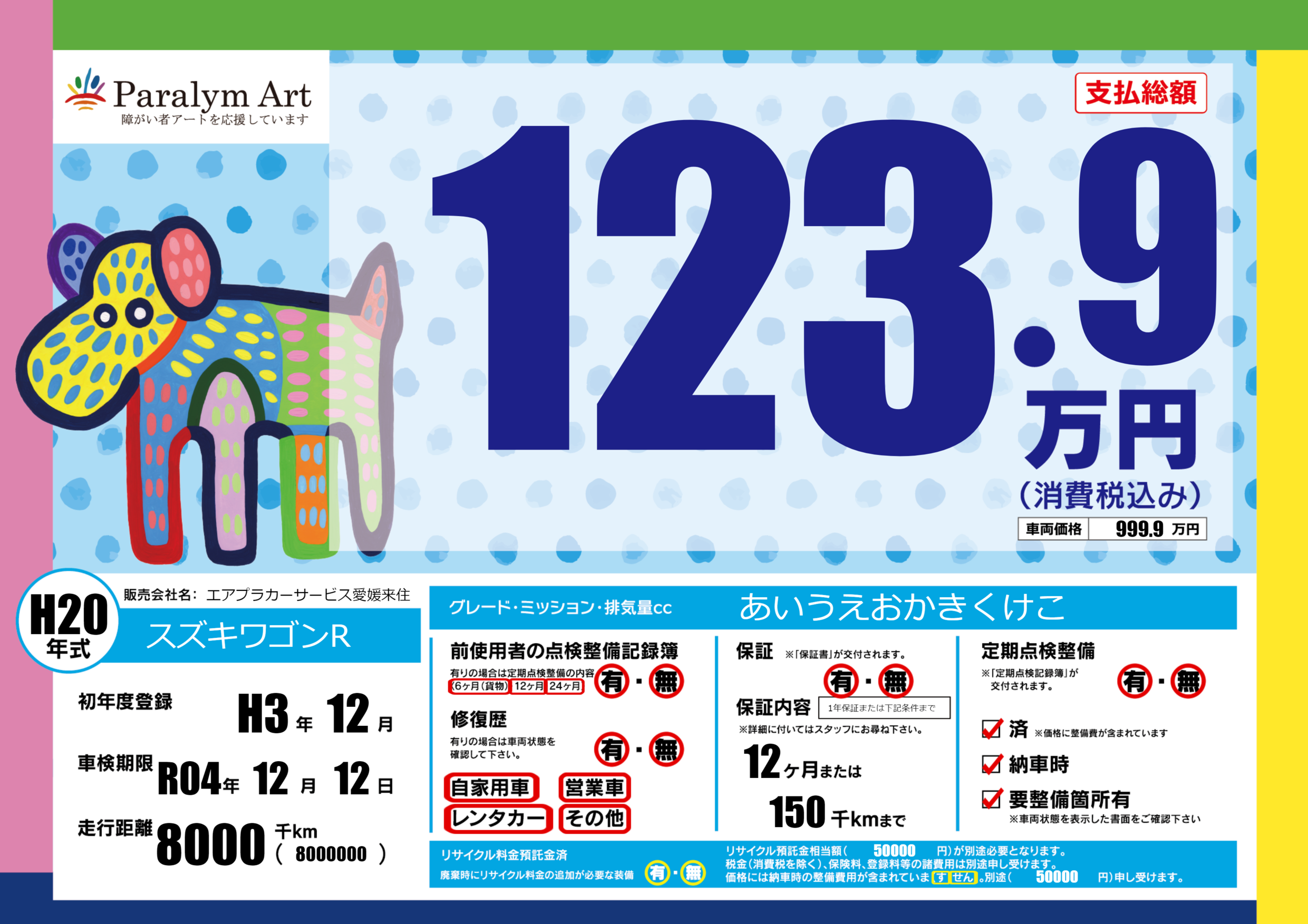 | 定期点検整備 | 定期点検整備あり 定期点検整備なし 定期点検整備済み 要整備箇所あり 納車時あり | ||