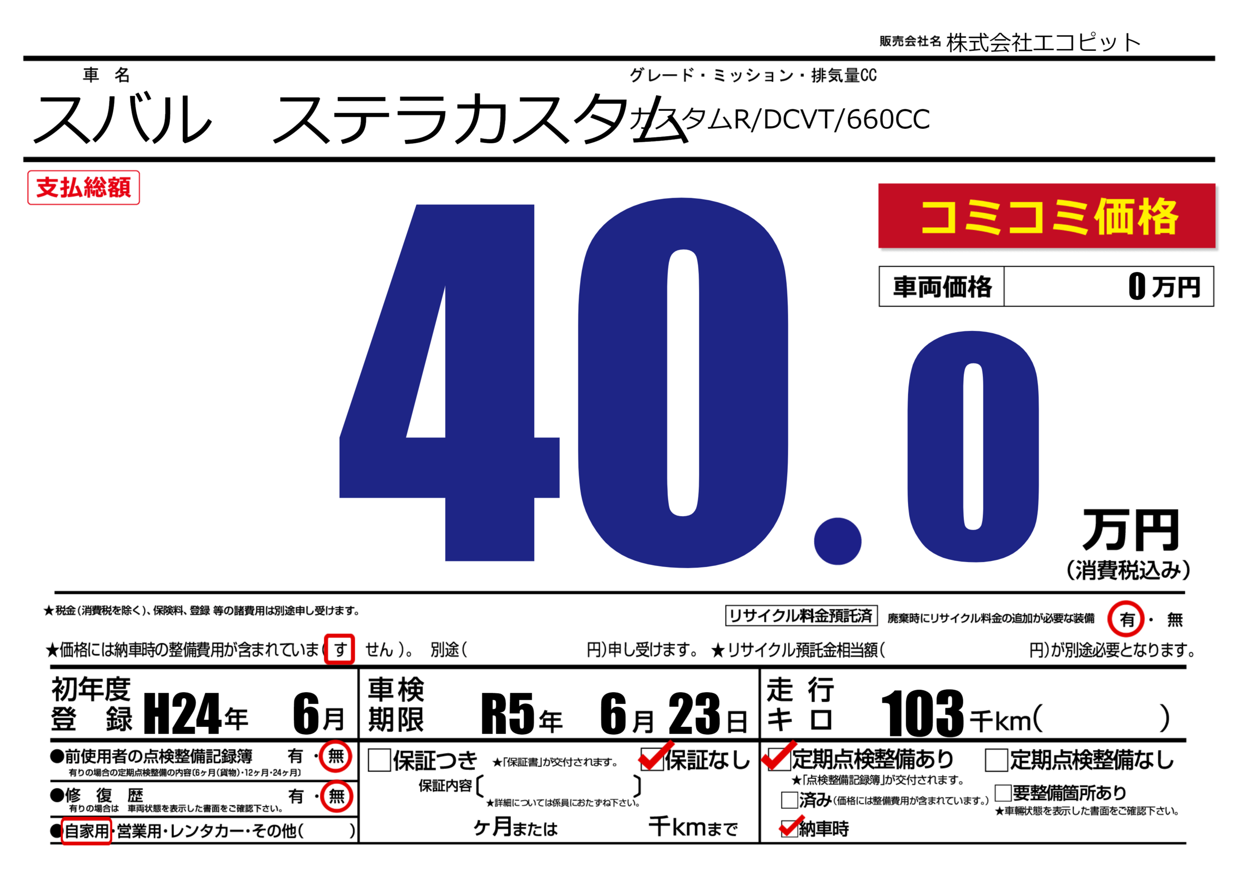 あり | 車検制限 | R5年6月23月 |