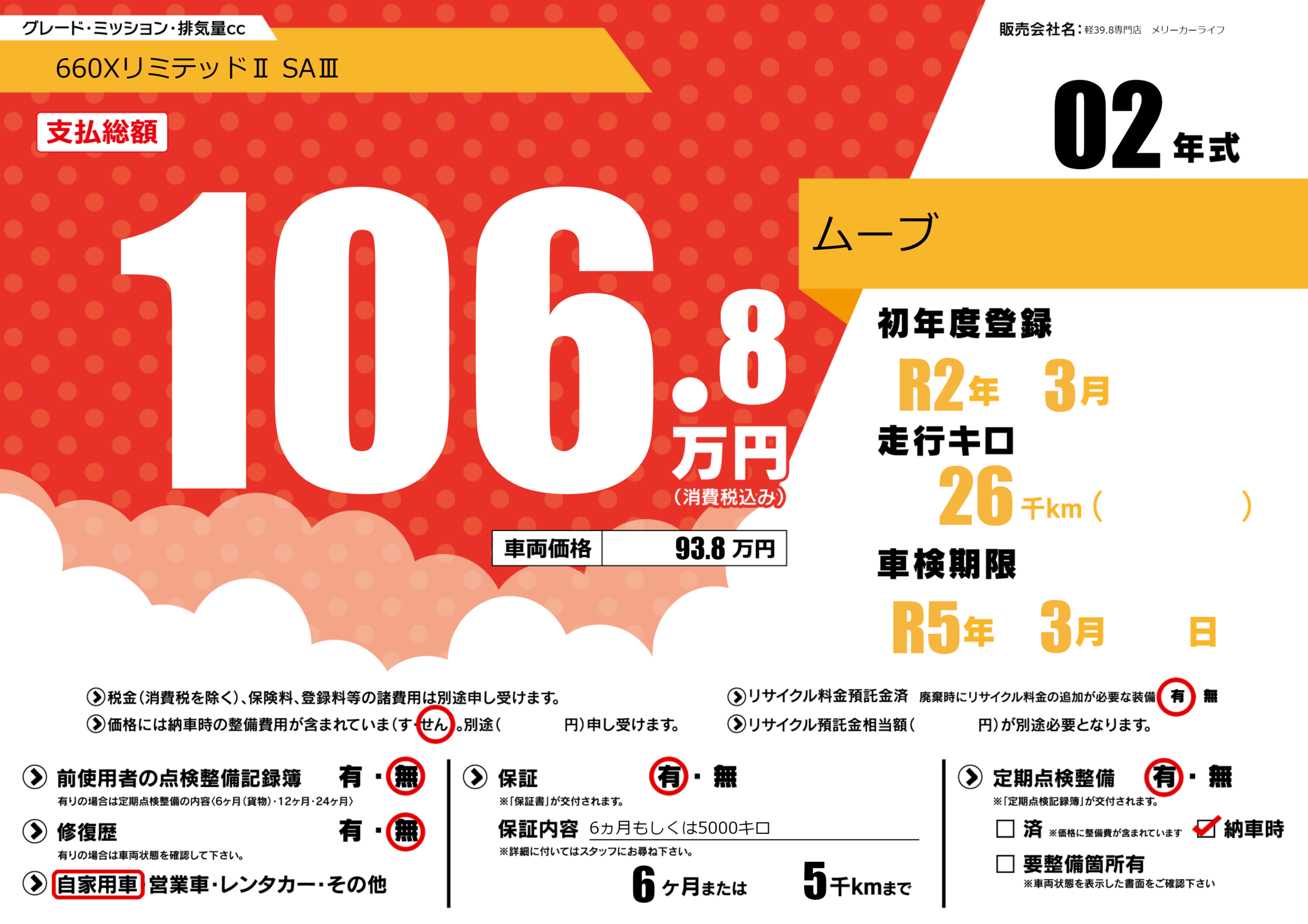 | 車名 | ムーブ | グレード ミッション 排気量 |