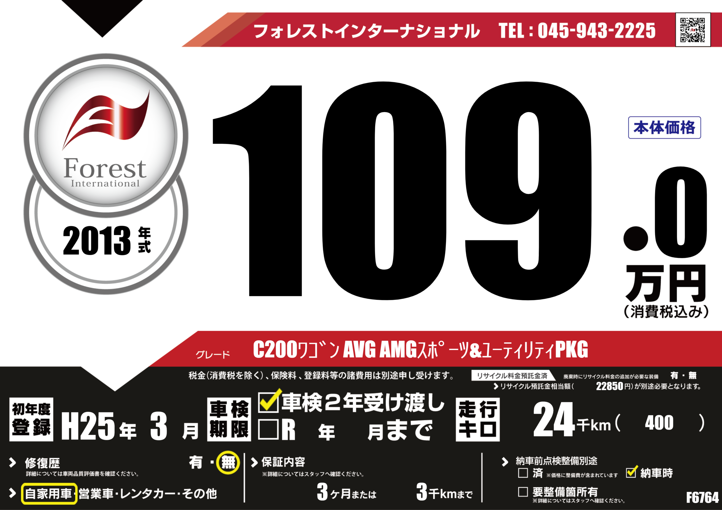 | 走行キロ | 2.4万km | 初年度登録 | H25年3月 |