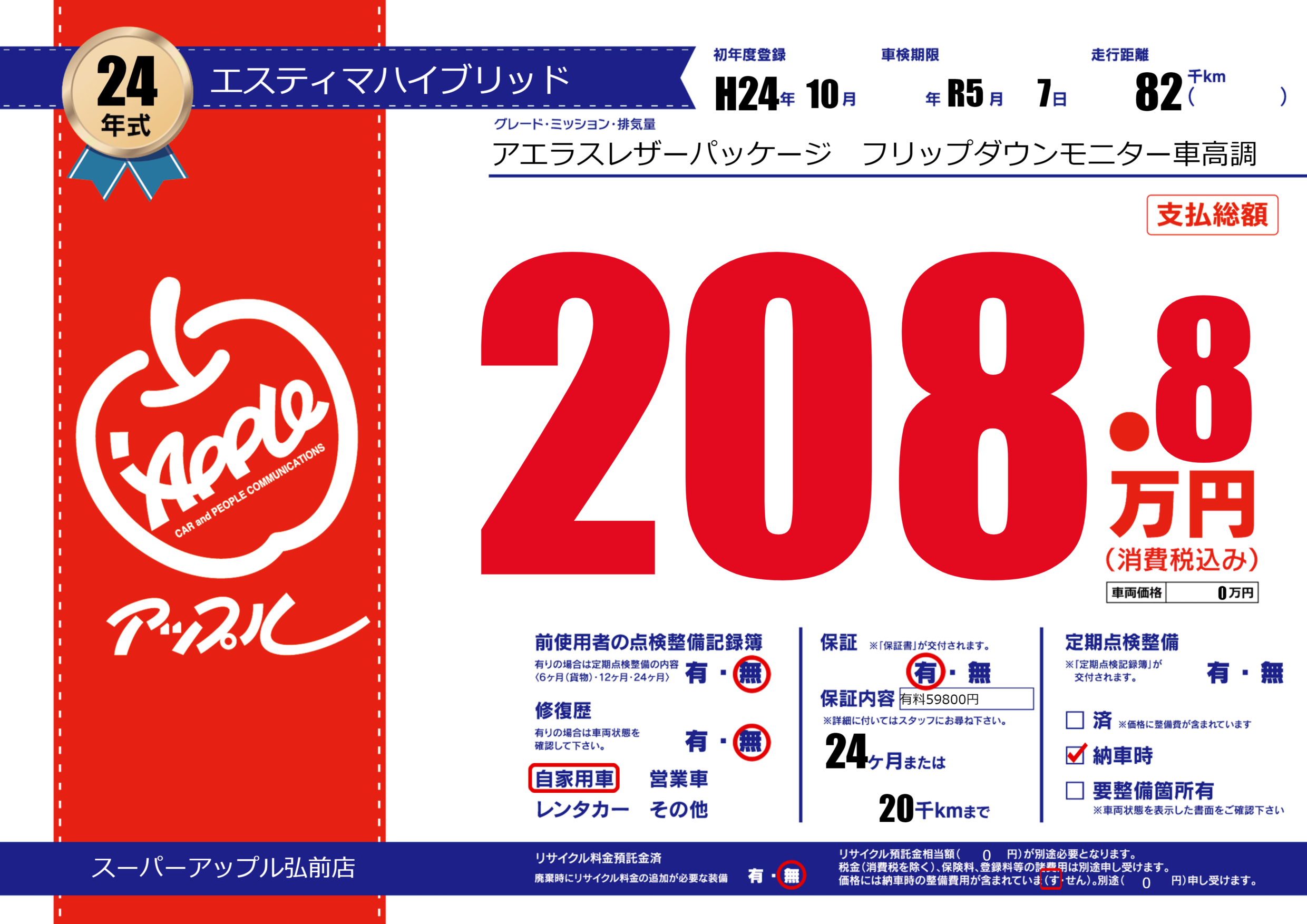 保証付き 保証内容(有料59800円) 24ヶ月または20千km |