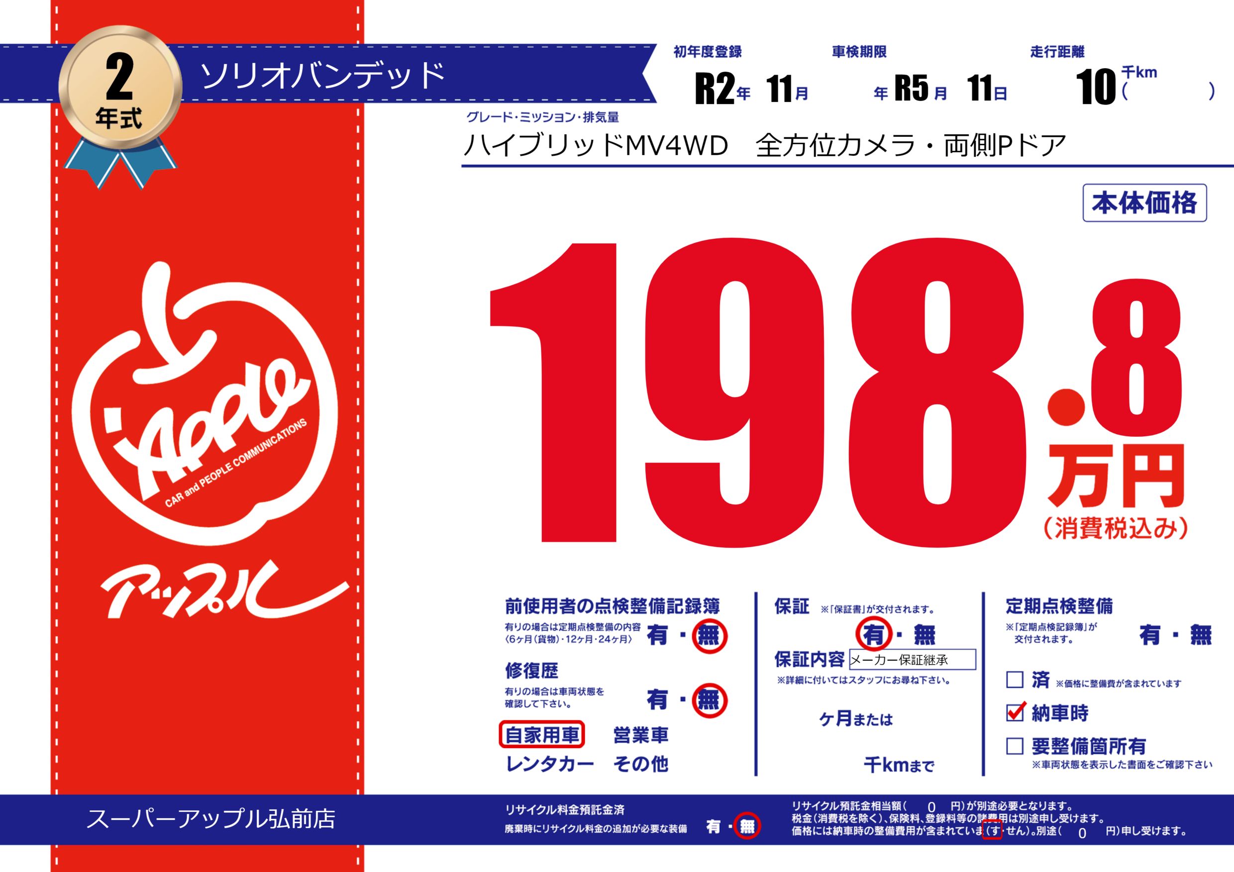 | 車名 | ソリオバンデッド | グレード ミッション 排気量 |