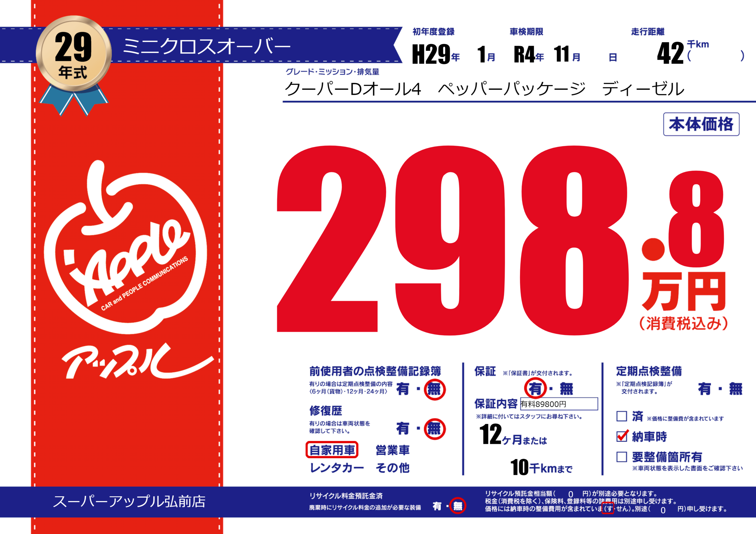 保証付き 保証内容(有料89800円) 12ヶ月または(10)千kmまで |