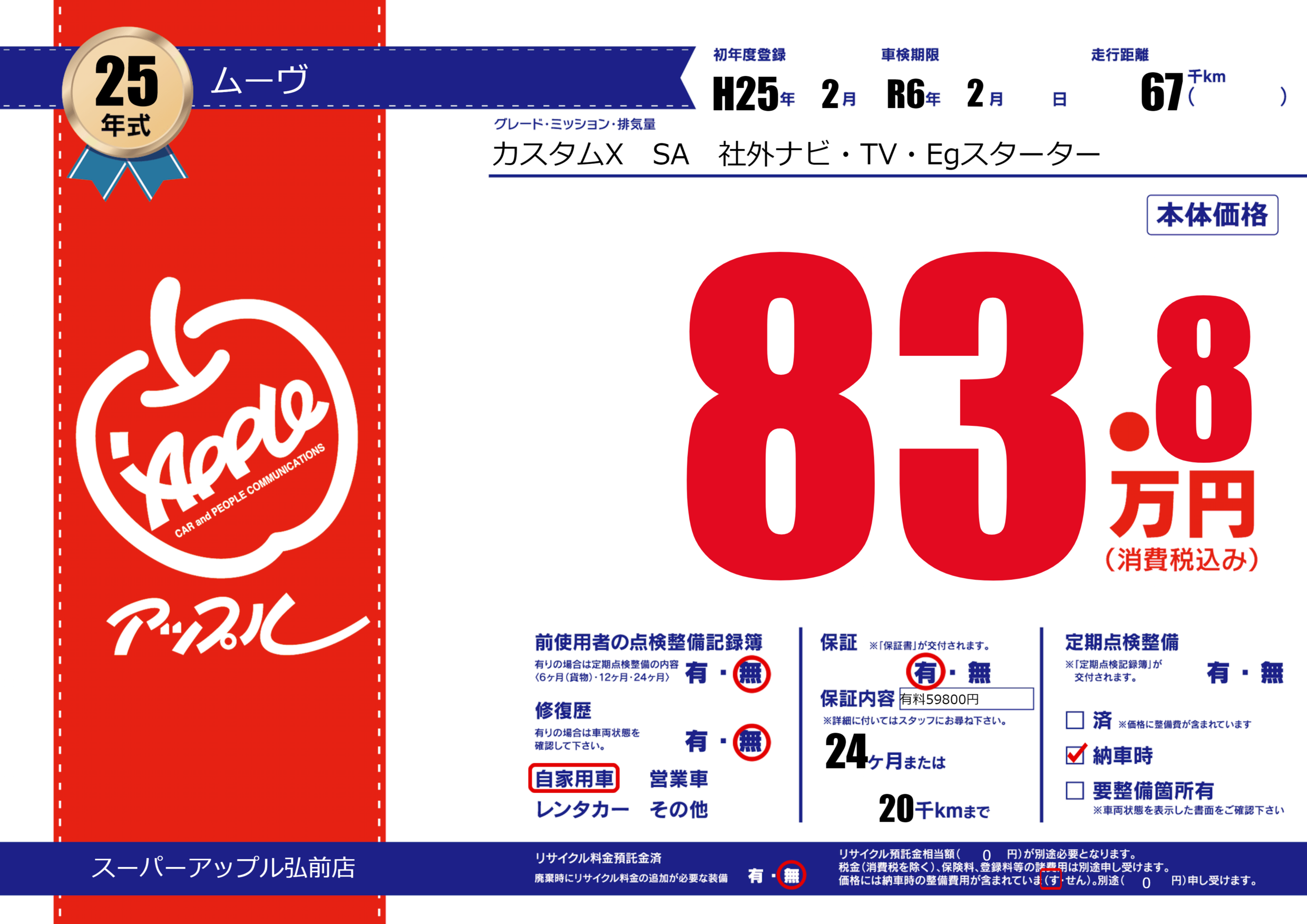 | 走行キロ | 6.7万km | 初年度登録 | H25年2月 |