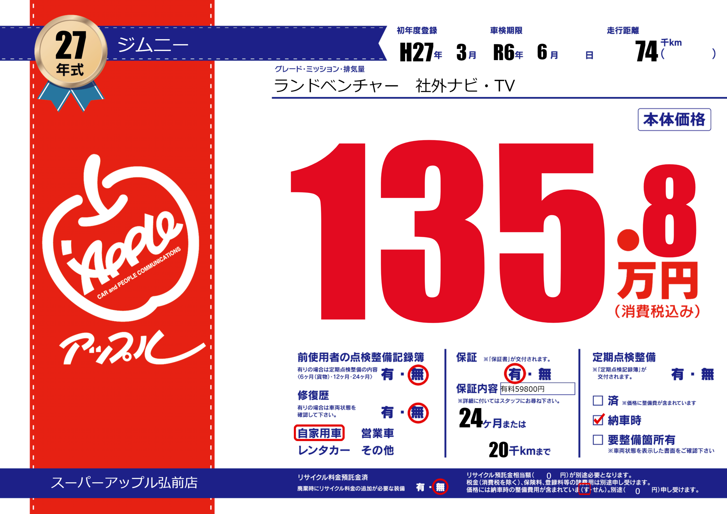 保証付き 保証内容(有料59800円) 24ヶ月または20千km |