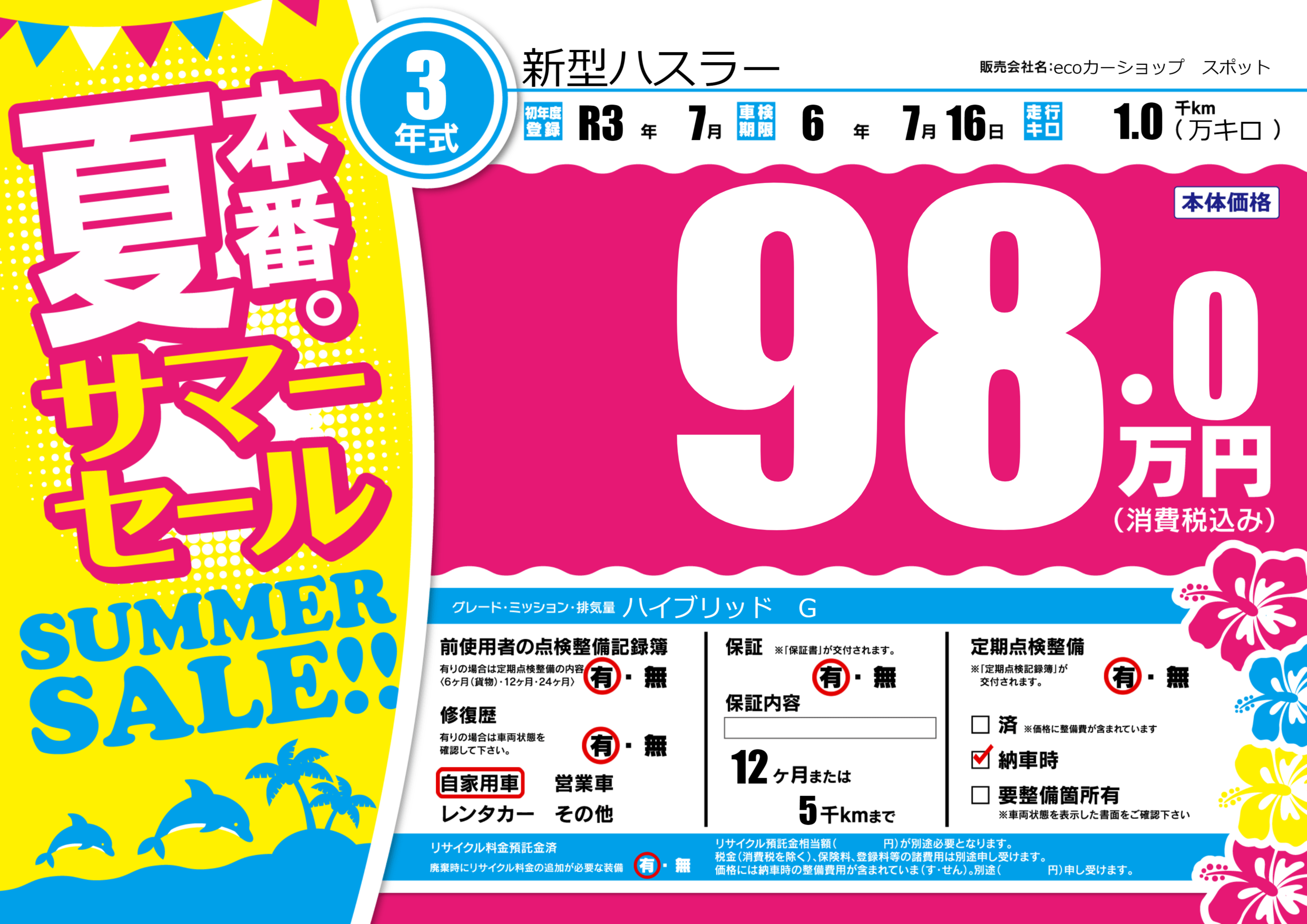 | 車名 | 新型ハスラー | グレード ミッション 排気量 |