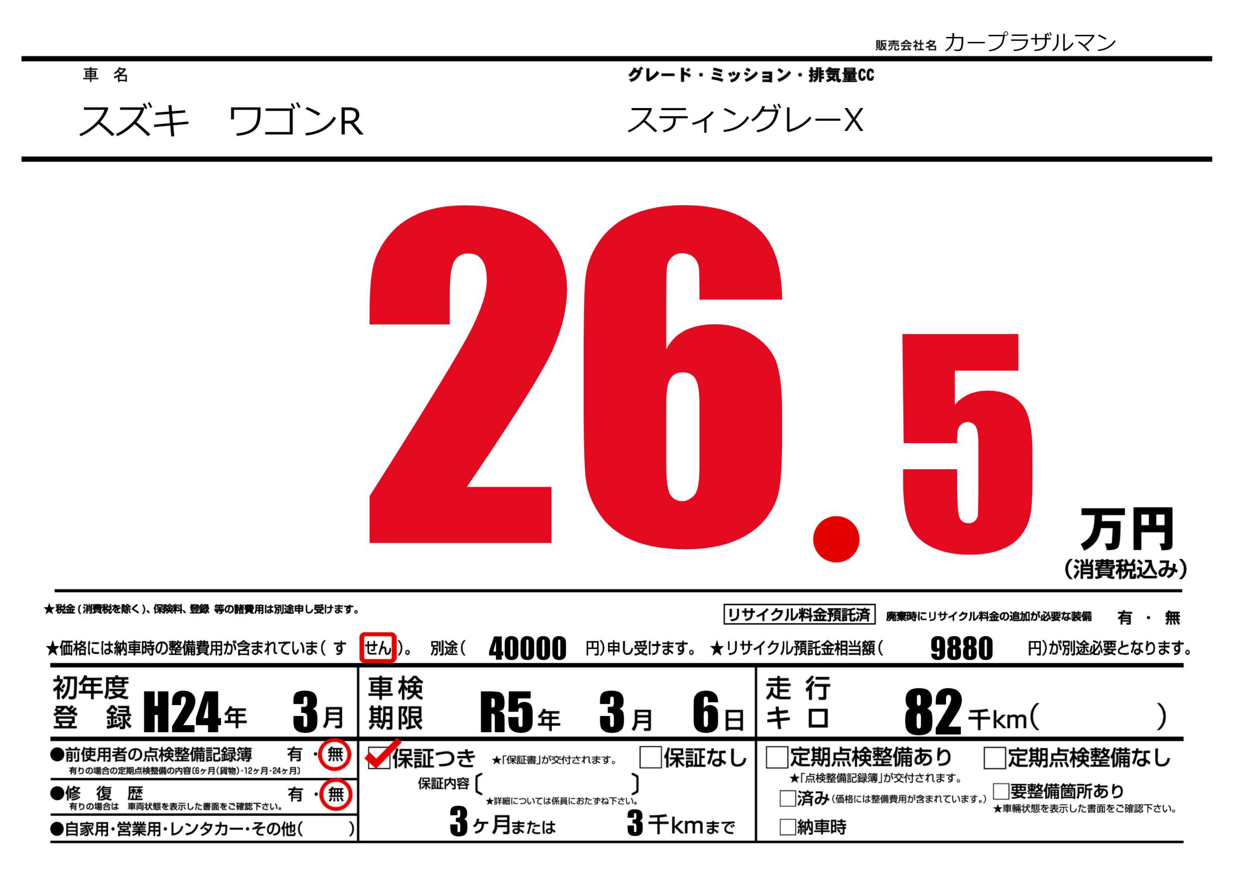 | 車名 | スズキ ワゴンR | グレード ミッション 排気量 |