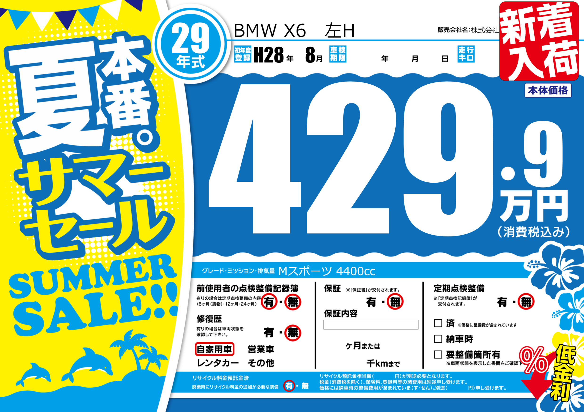 | 車名 | BMW X6 左H | グレード ミッション 排気量 |