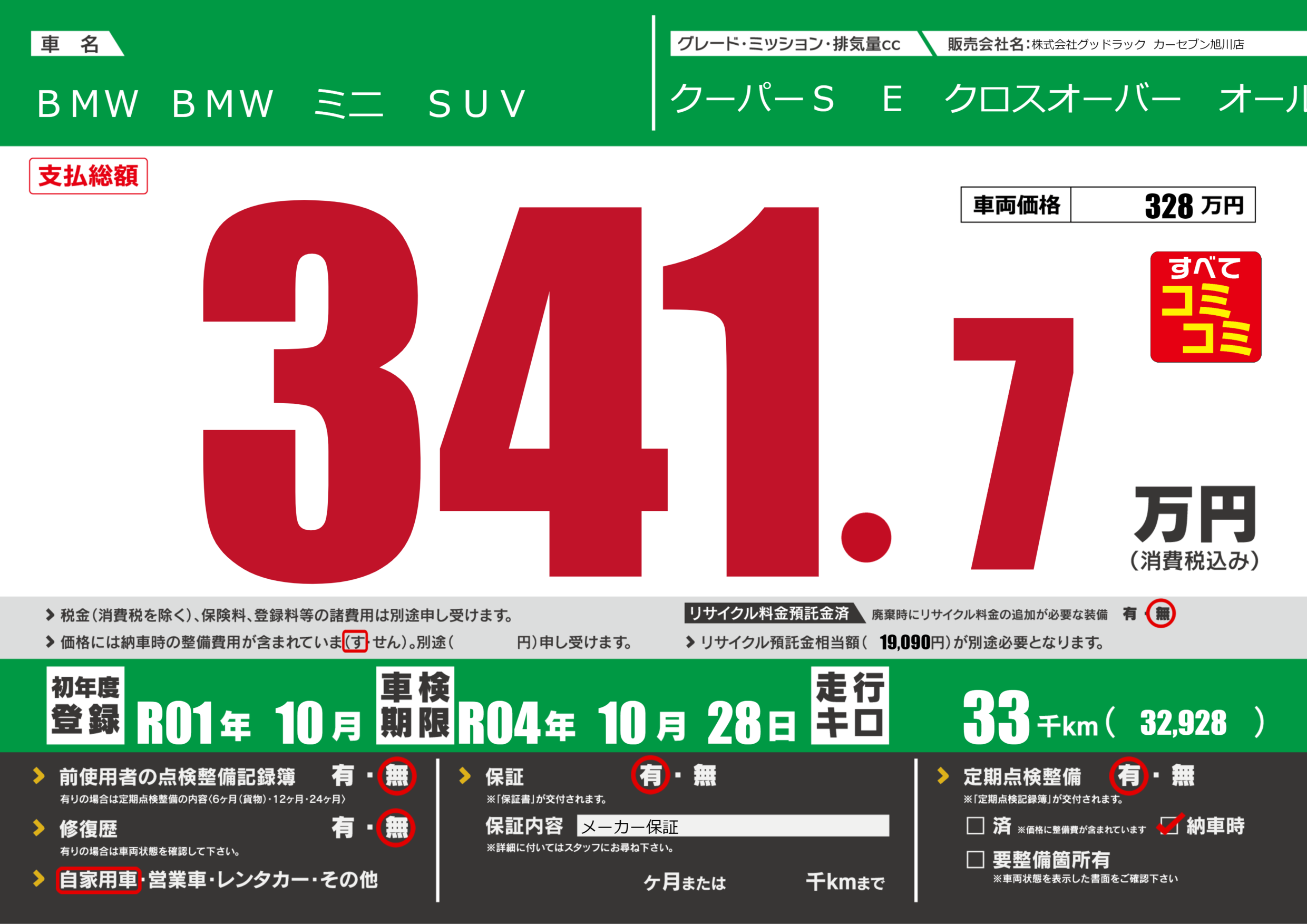 | 車名 | BMW BMW ミニ SUV | グレード ミッション 排気量 |