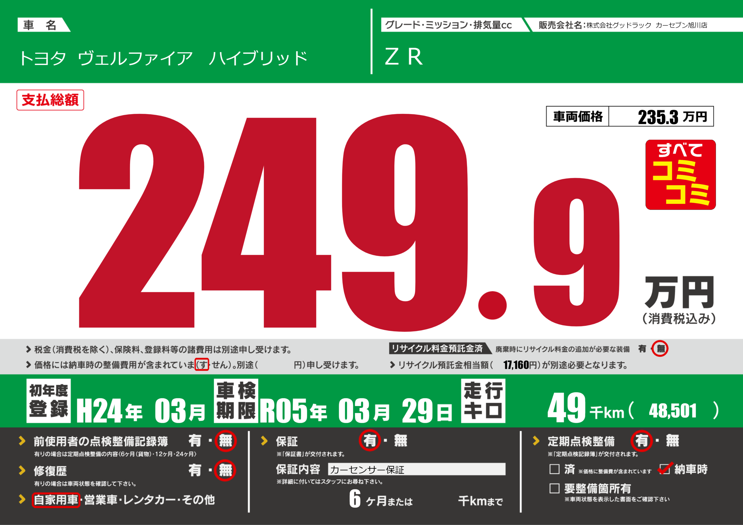 あり | 車検制限 | R05年03月29月 |