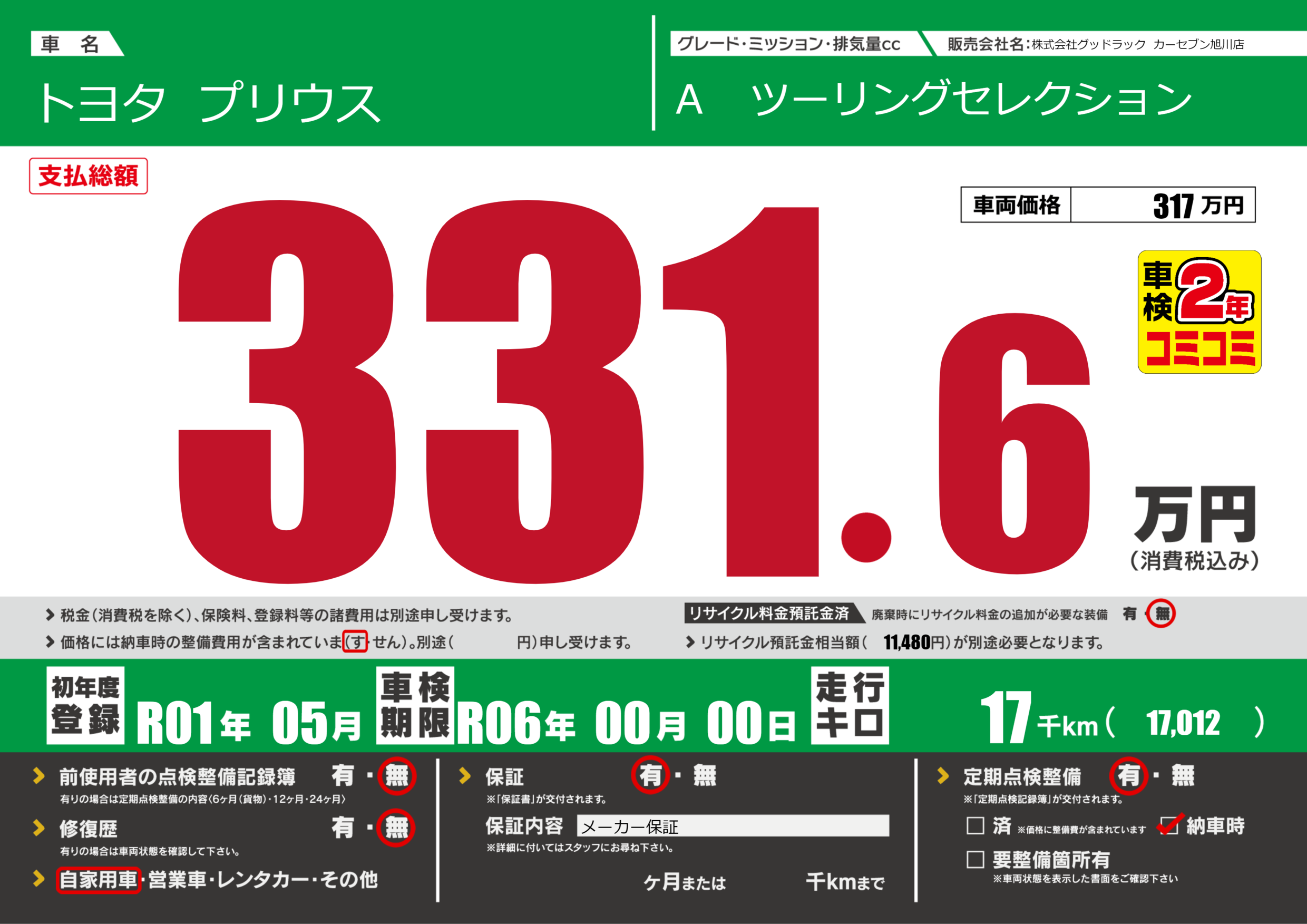 | 車検制限 | R06年 00月 00日 | ||