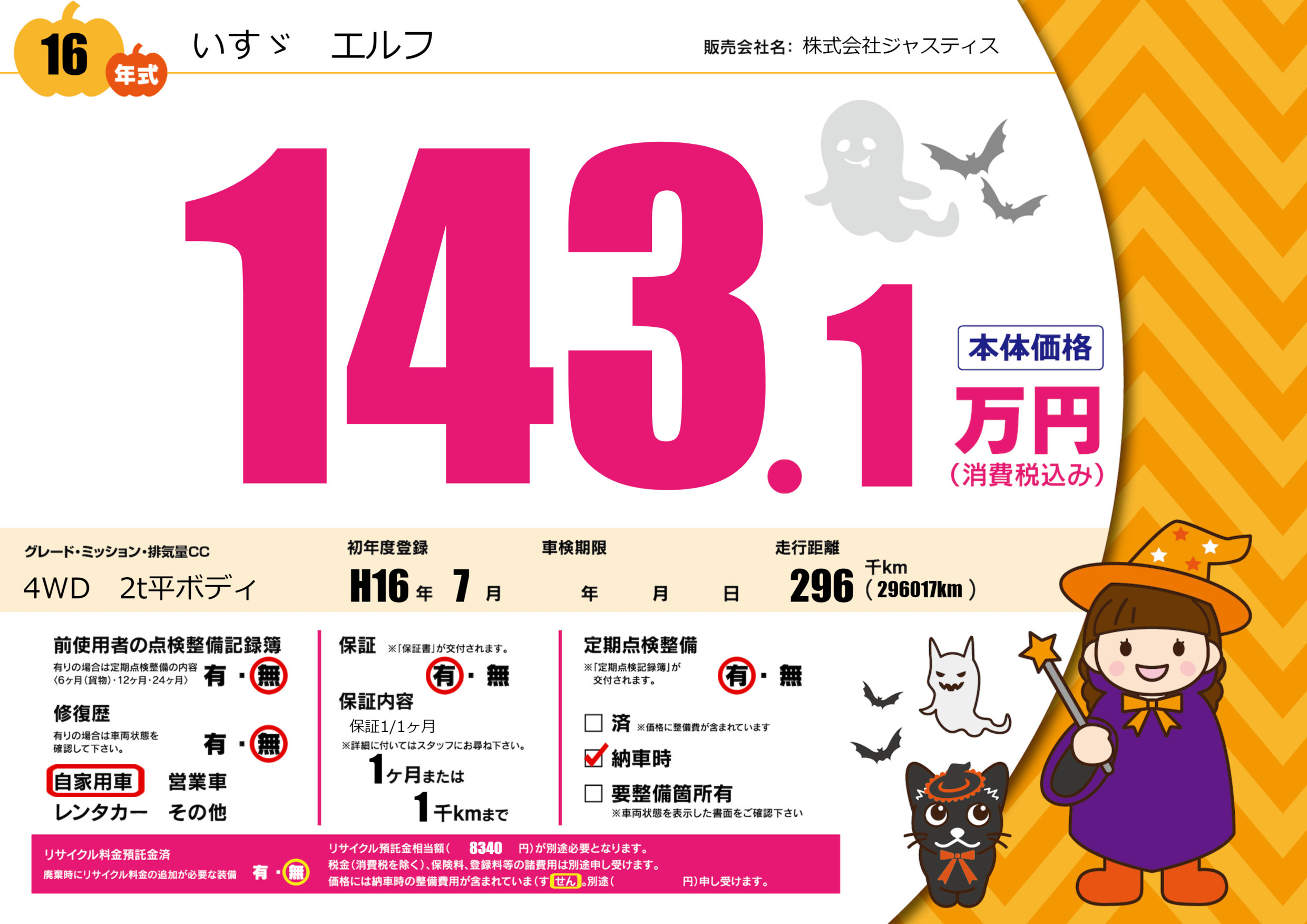 | 走行キロ | 29.6万km | 初年度登録 | H16年7月 |