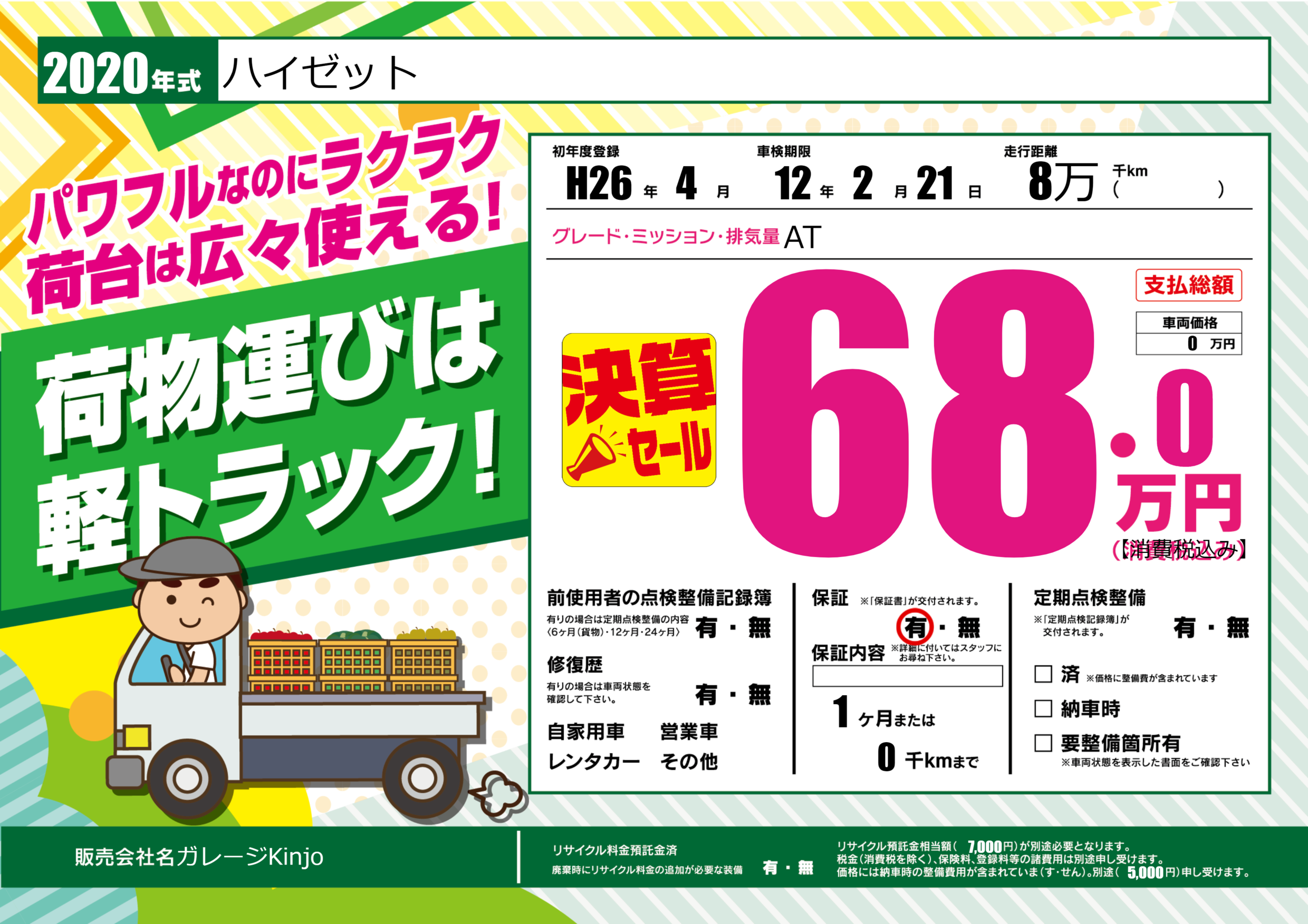 | 車名 | ハイゼット | グレード ミッション 排気量 |