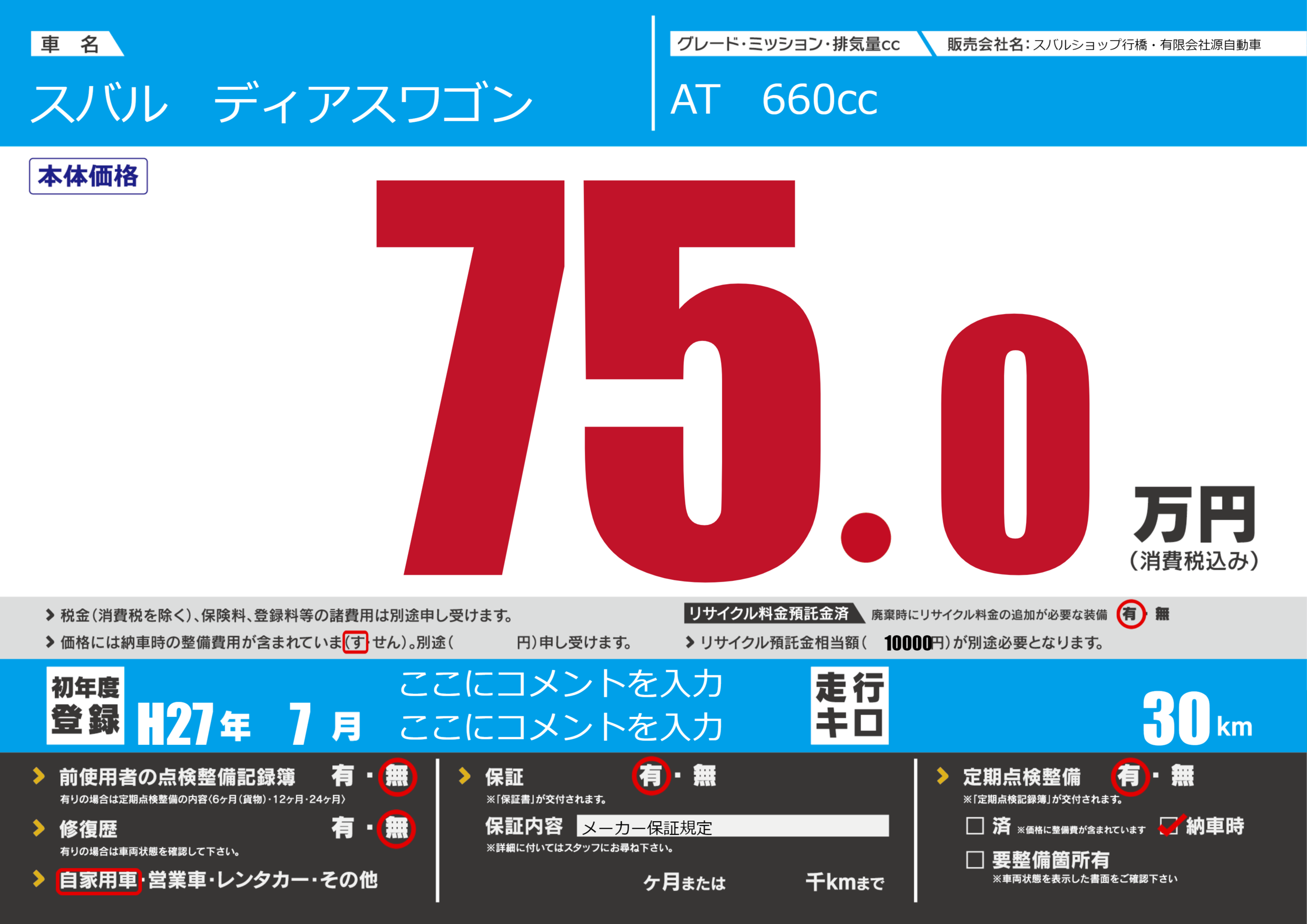 | 走行キロ | 3万km | ||