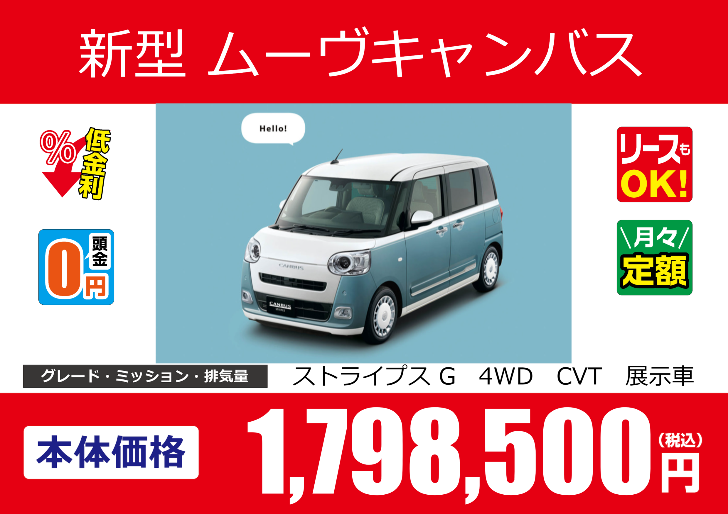 | 車名 | 新型 ムーヴキャンバス | グレード ミッション 排気量 |