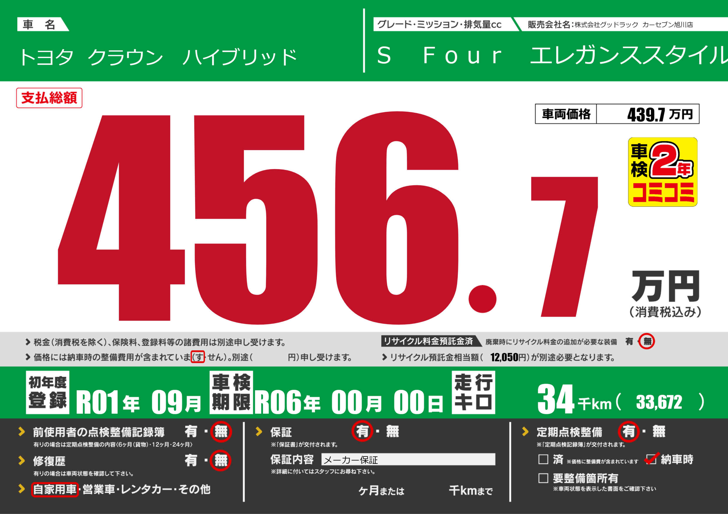 | 車検制限 | R06年 00月 00日 | ||