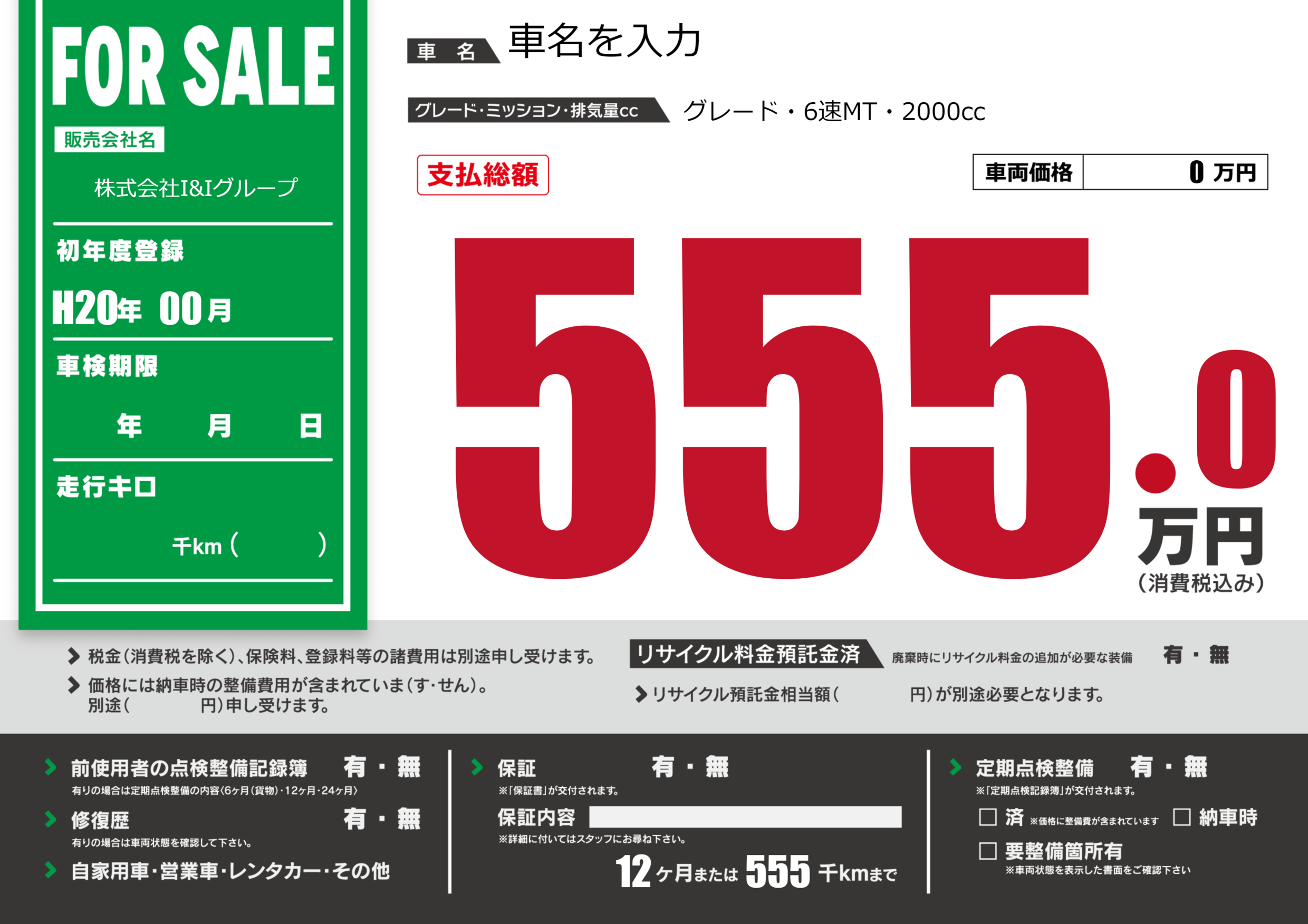 | 車名 | 車名を入力 | グレード ミッション 排気量 |