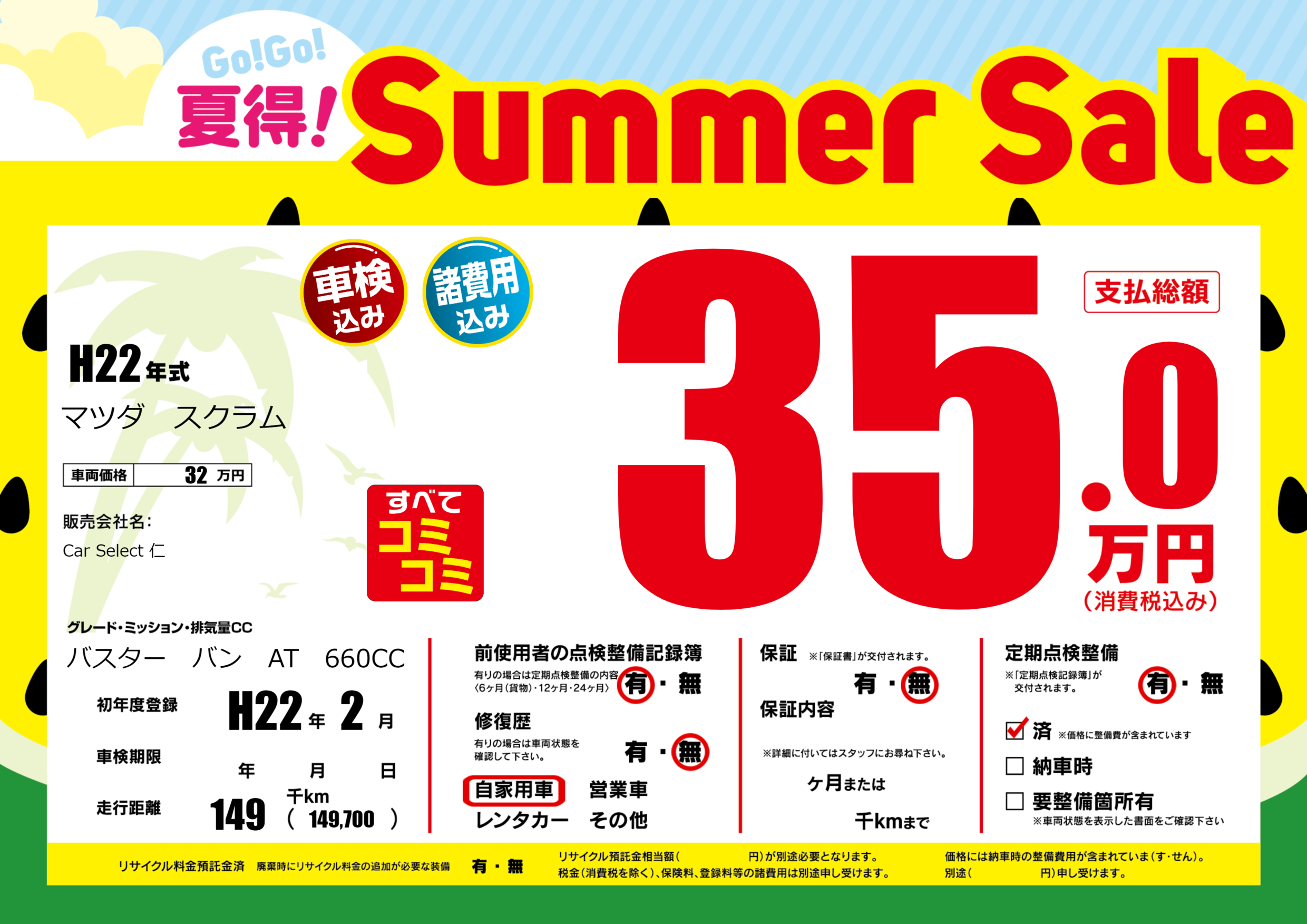 | 定期点検整備 | 定期点検整備あり 定期点検整備済み | ||