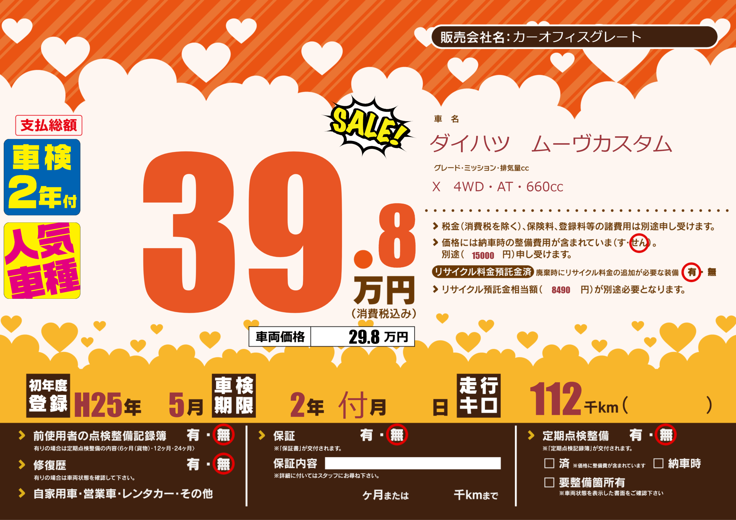 | 定期点検整備 | 定期点検整備なし | ||