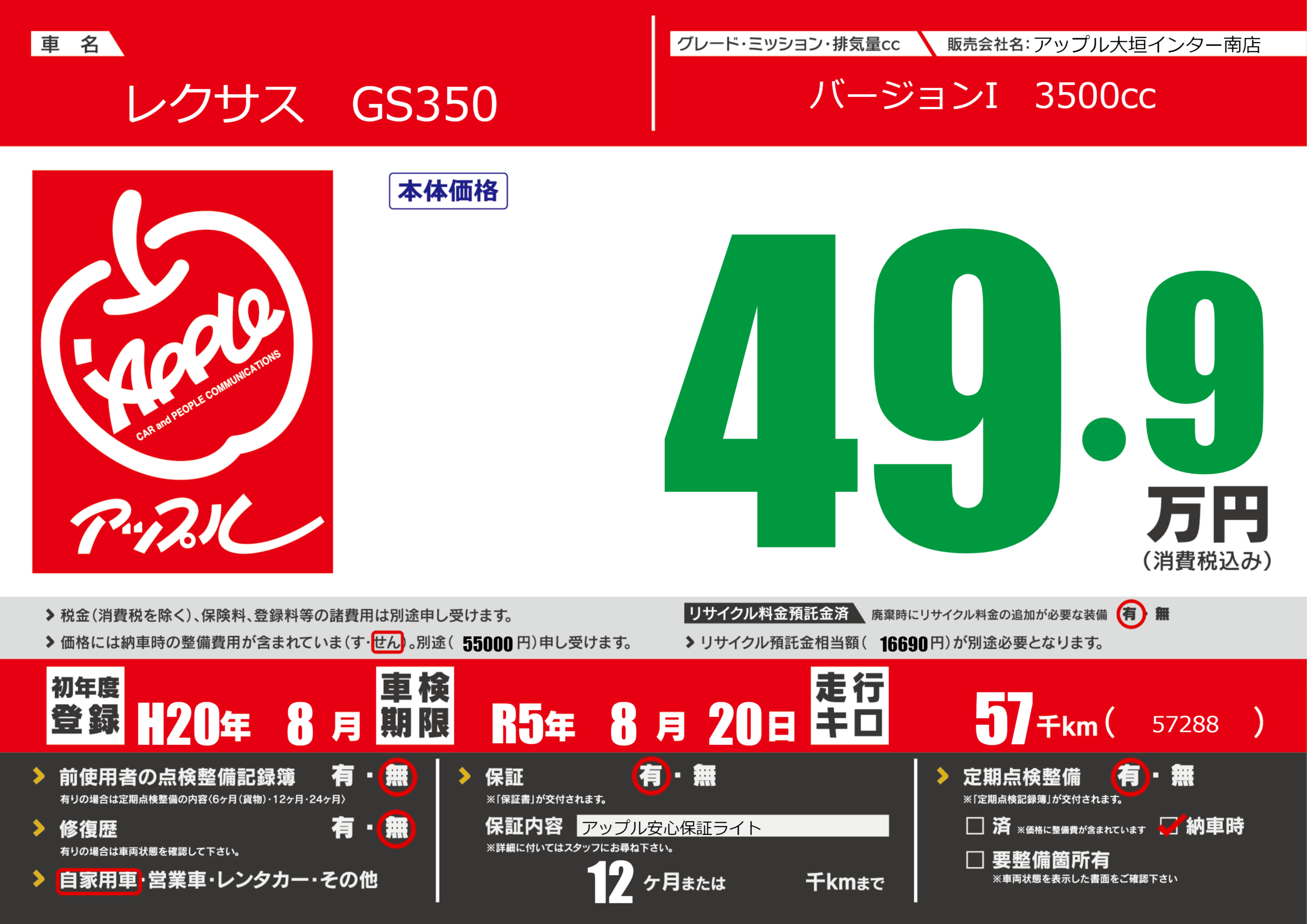 車検制限 | R5年8月20月 |