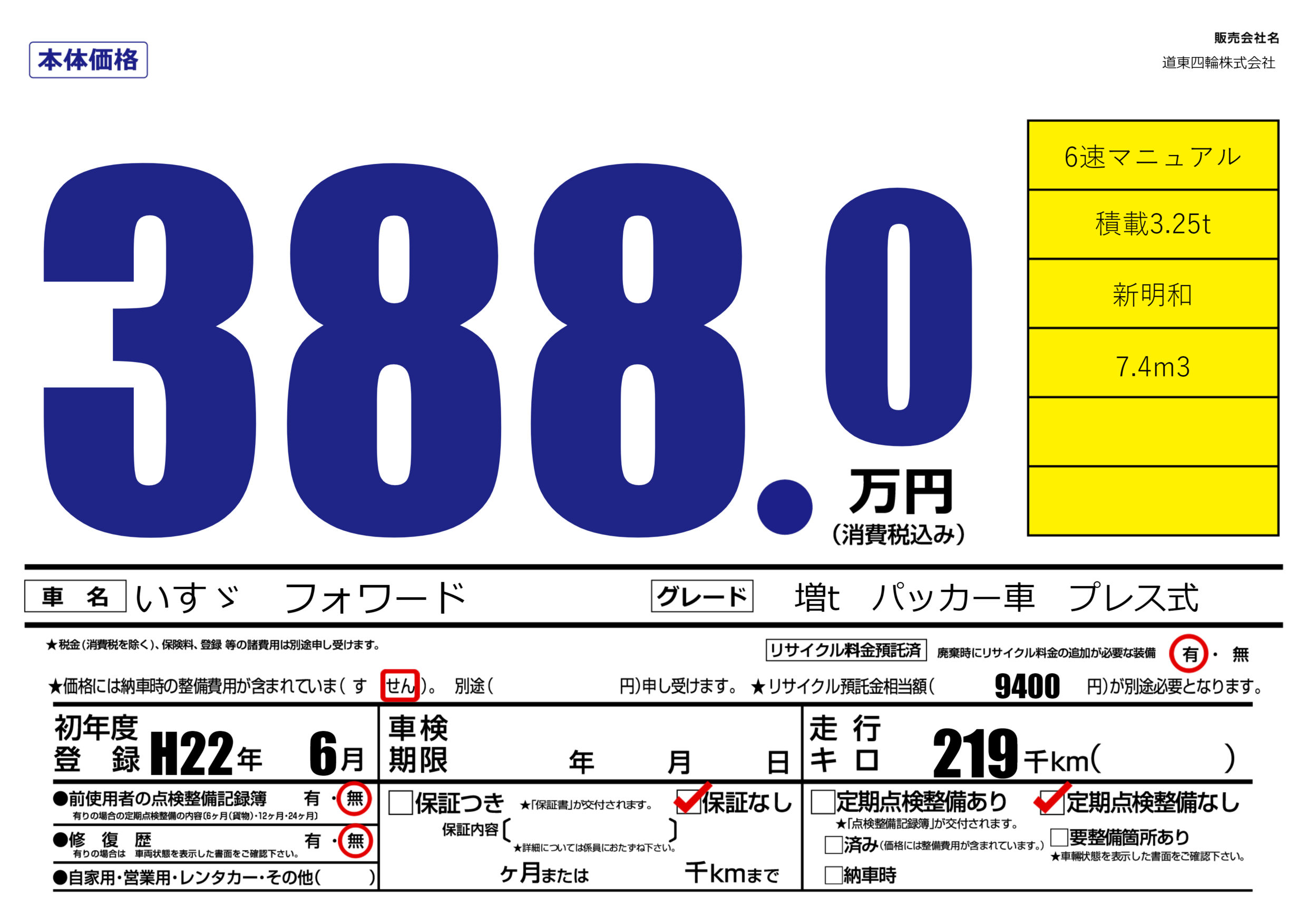 | 車名 | いすゞ フォワード | グレード ミッション 排気量 |