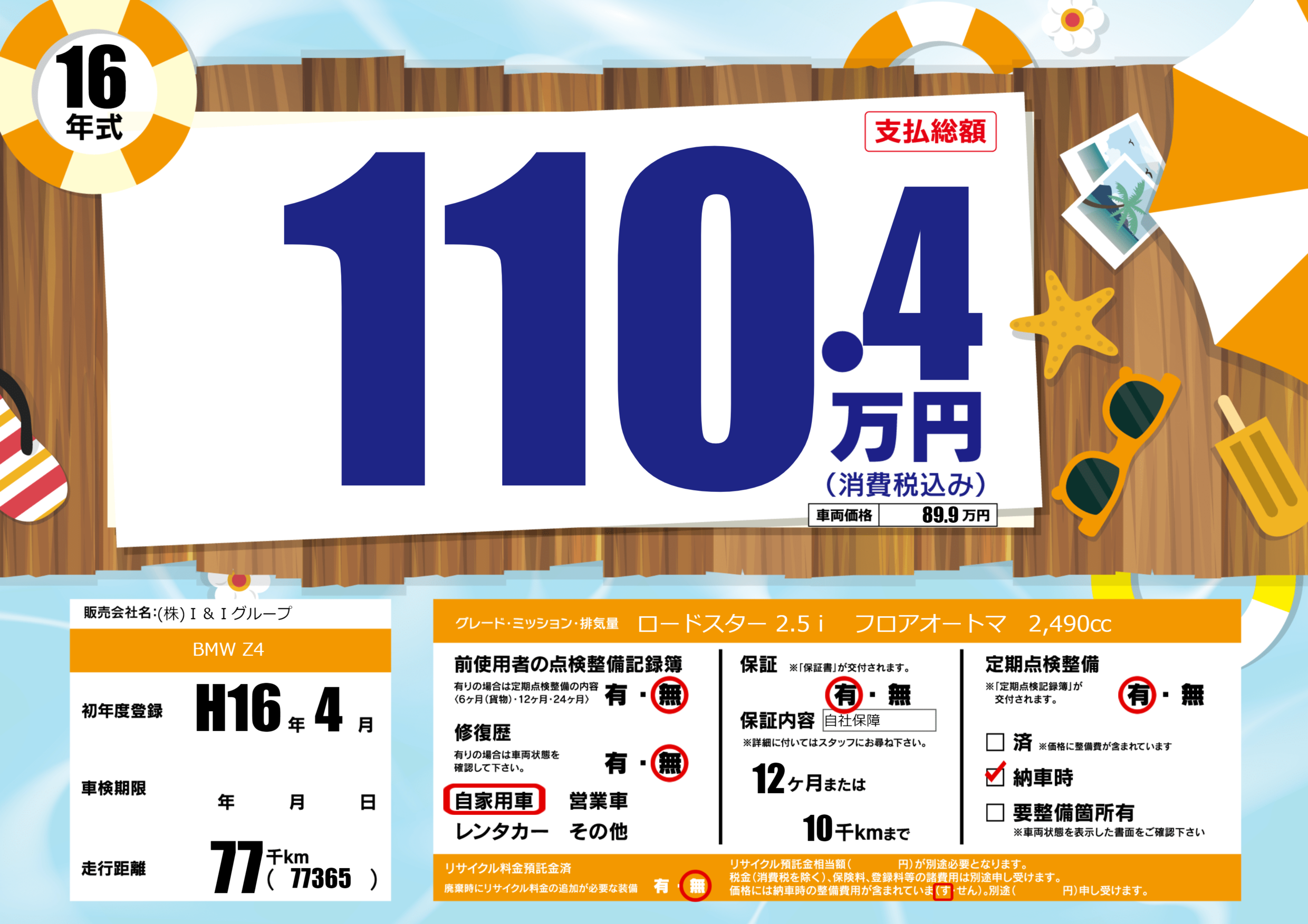 | 車名 | BMW Z4 | グレード ミッション 排気量 |