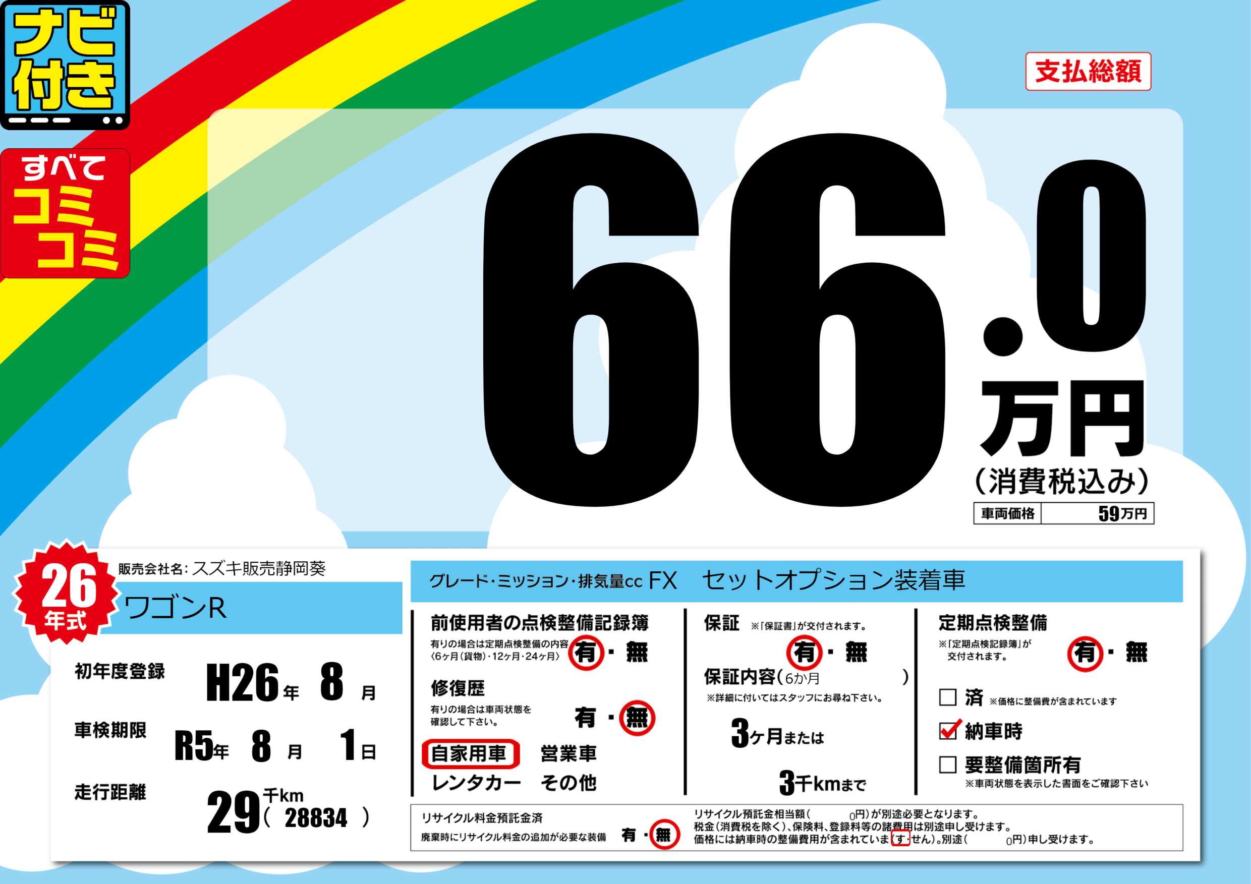 | 車名 | ワゴンR | グレード ミッション 排気量 |