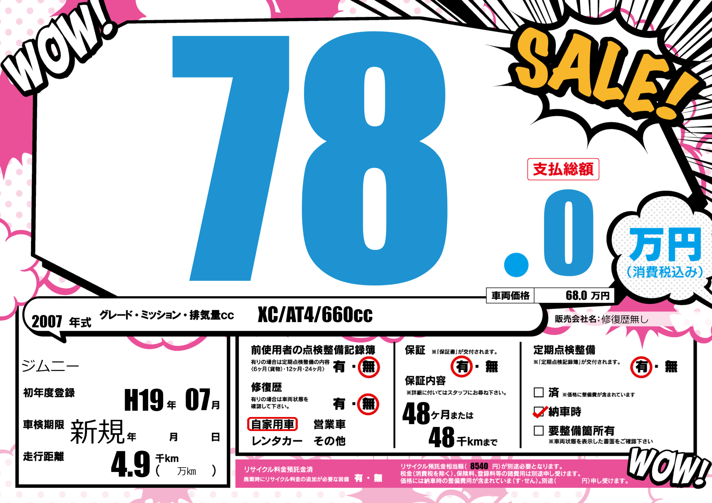 保証付き 保証内容(---) 48ヶ月または(48)千kmまで |