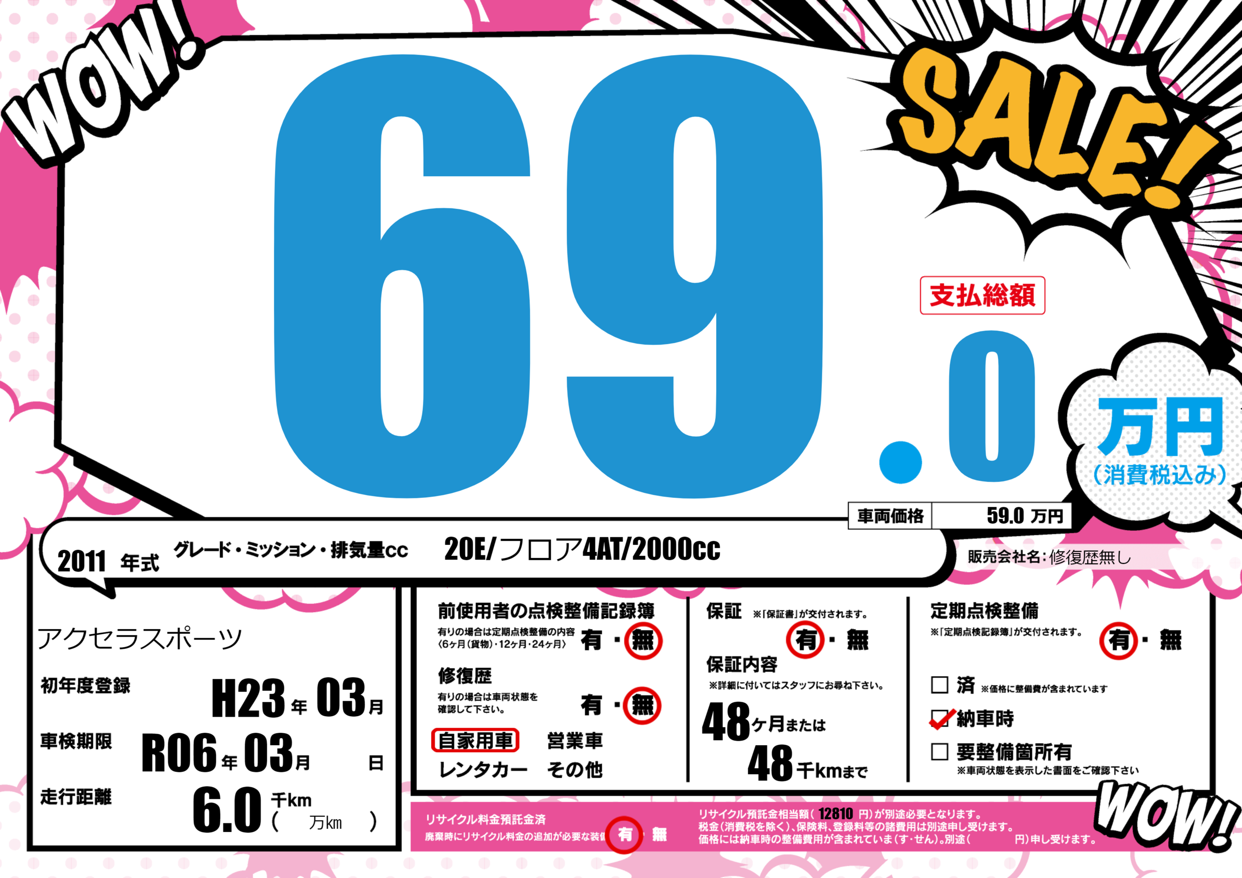 保証付き 保証内容(---) 48ヶ月または(48)千kmまで |