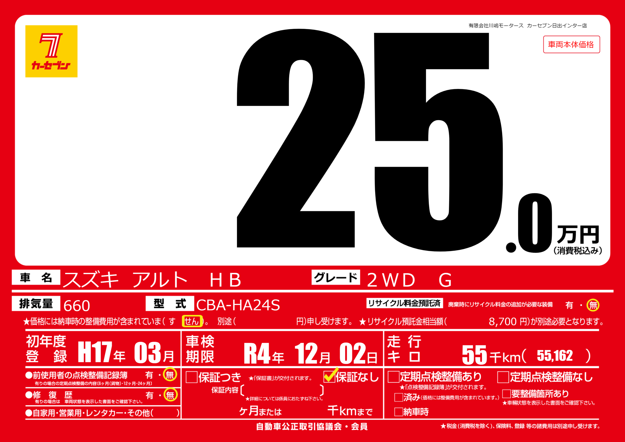 なし | 車検制限 | R4年12月02月 |