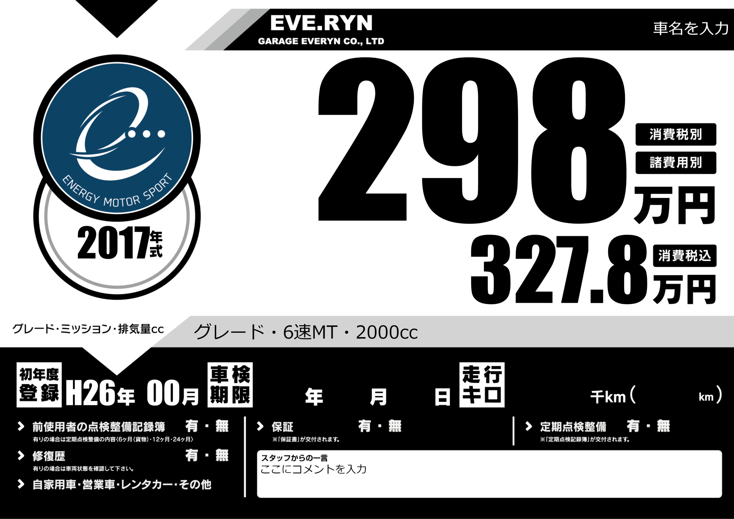 | 車名 | 車名を入力 | グレード ミッション 排気量 |