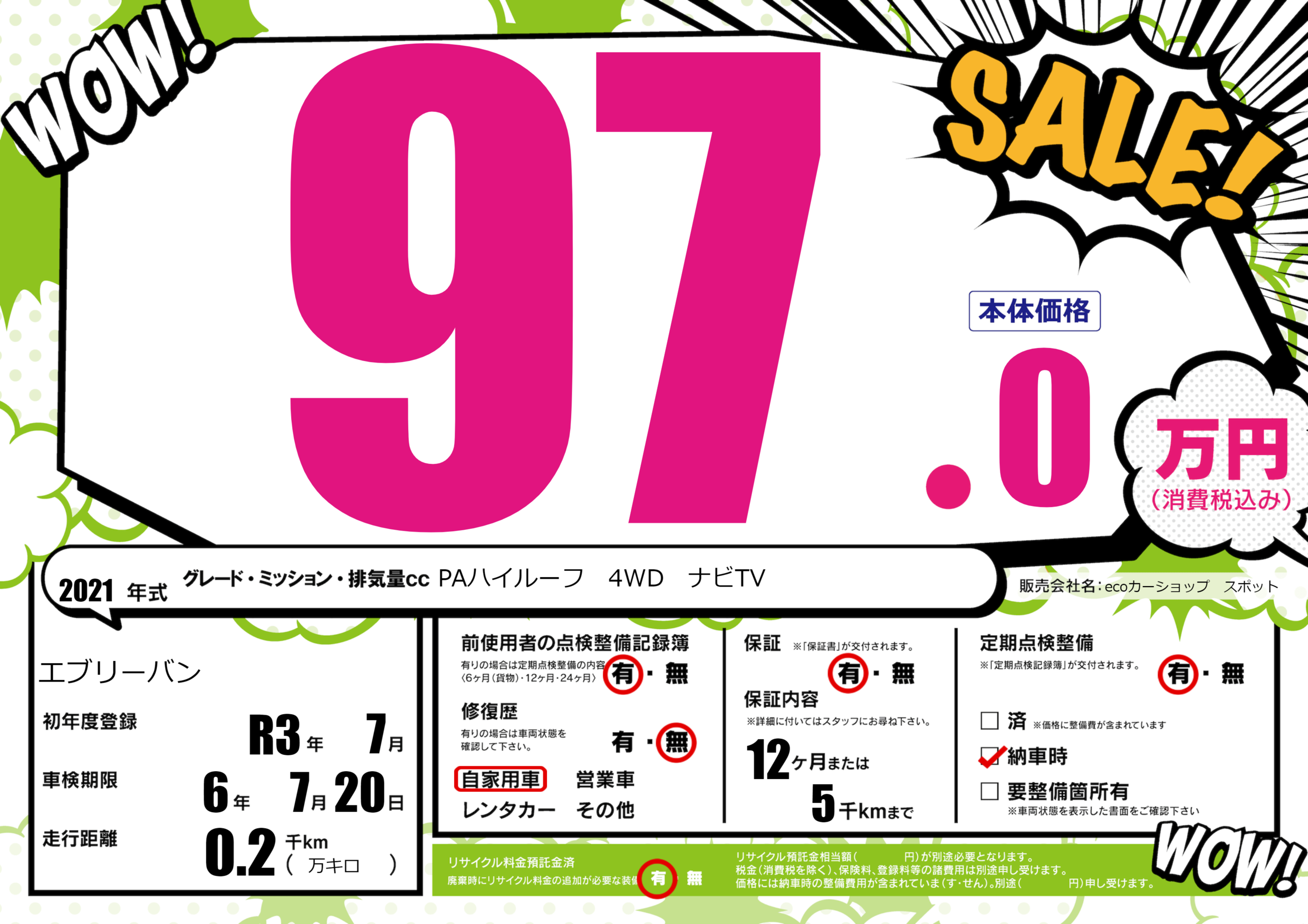 | 車検制限 | 6年 7月 20日 | ||