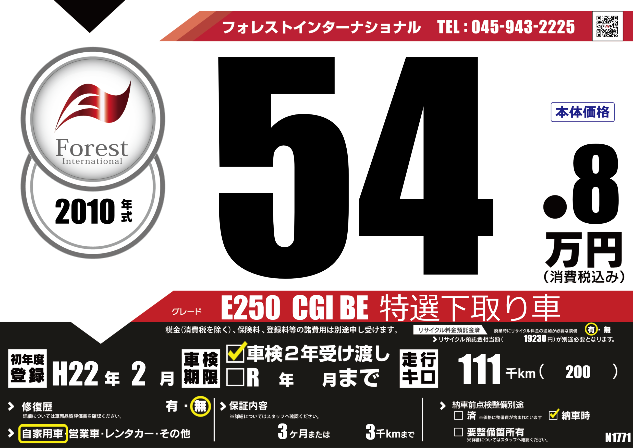 E250 CGI BE 特選下取り車 |