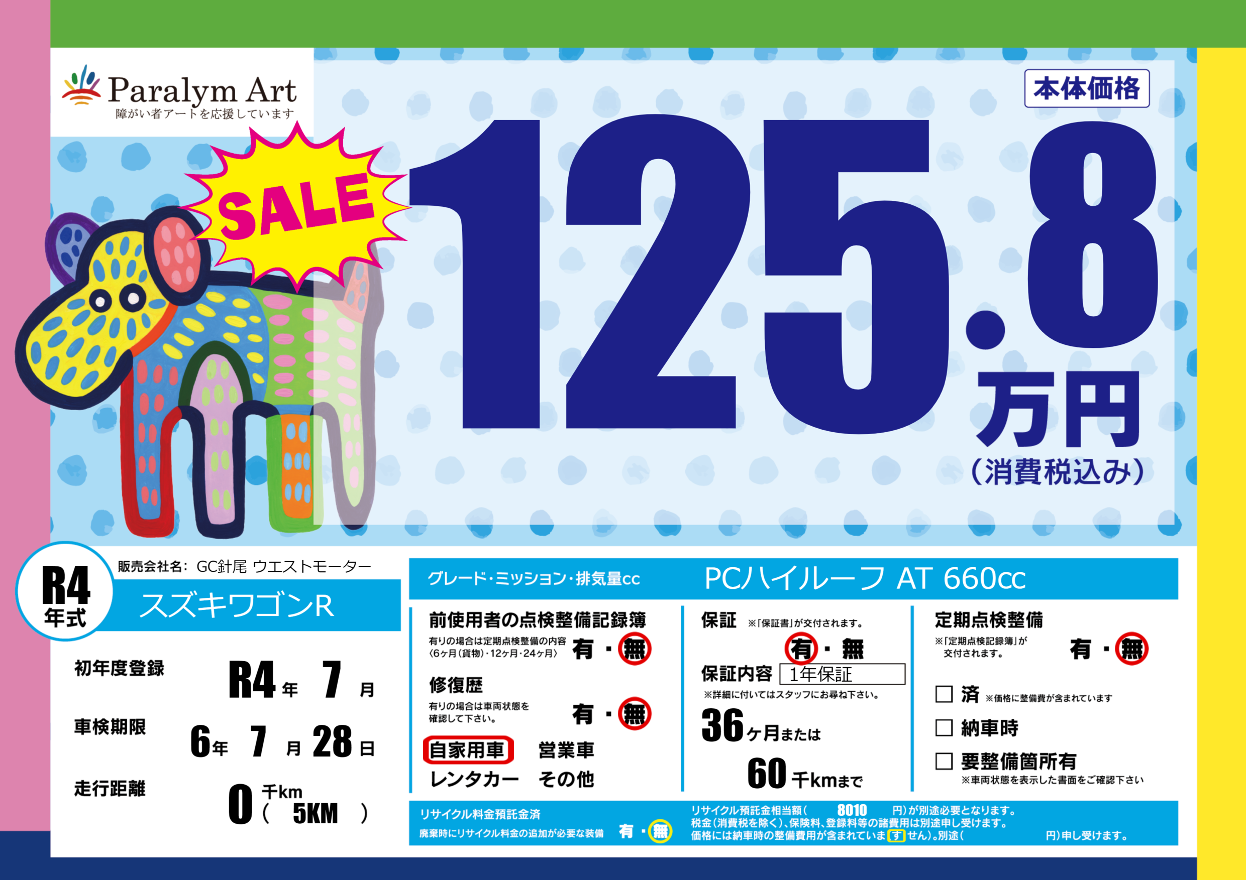 | 車名 | スズキワゴンR | グレード ミッション 排気量 |